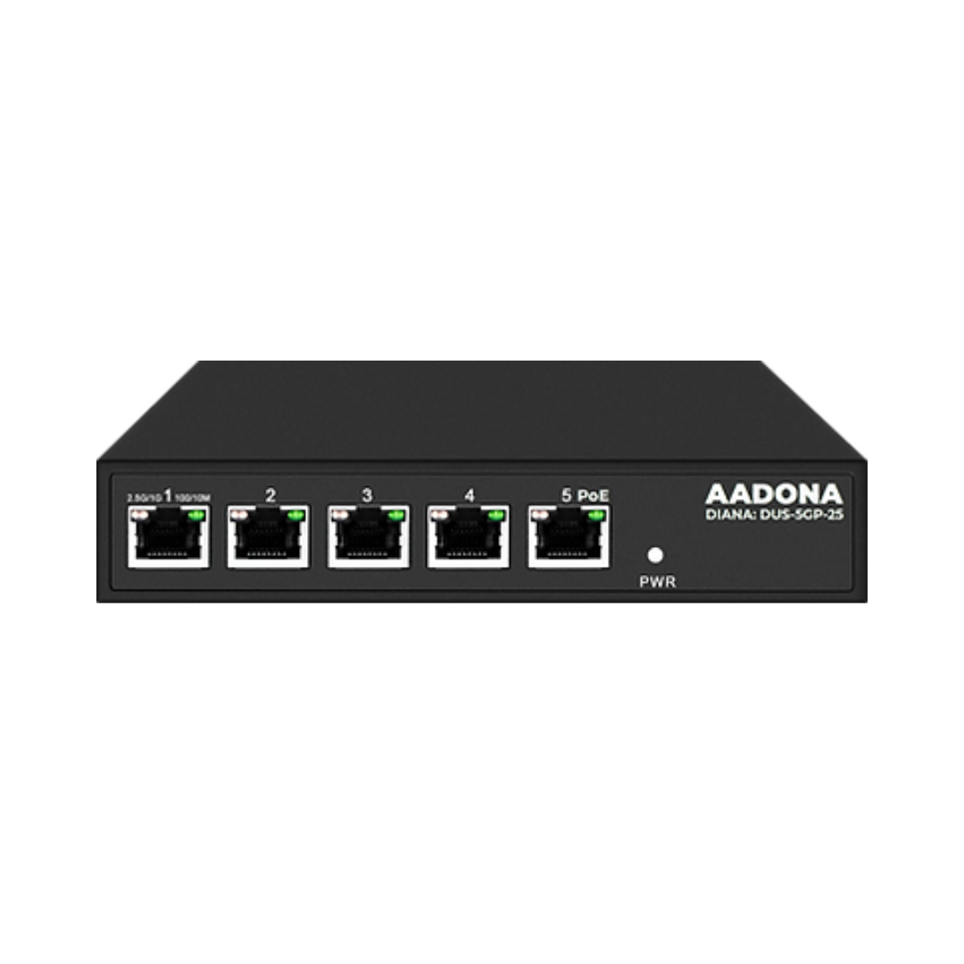 Introducing Aadona’s DIANA:DUS-5GP-25, a compact yet powerful unmanaged nonPoE switch meticulously designed to enhance network connectivity for small and mediumsized businesses (SMBs). With its robust performance and effortless operation, this switch provides essential networking capabilities without the need for complex configuration, making it an ideal solution for businesses seeking seamless plugandplay functionality.