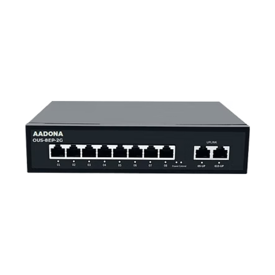 | The ORION OUS-8GP-2G-1F Industrial PoE+ Ethernet Switch delivers combined power delivery and extended connectivity through its 8 PoE+ ports, 2 gigabit uplinks, and 1 fiber SFP port. This configuration makes it an excellent choice for networks needing high-power PoE+ support and long-reach fiber links — such as outdoor surveillance systems, campus networks, and distributed automation installations.