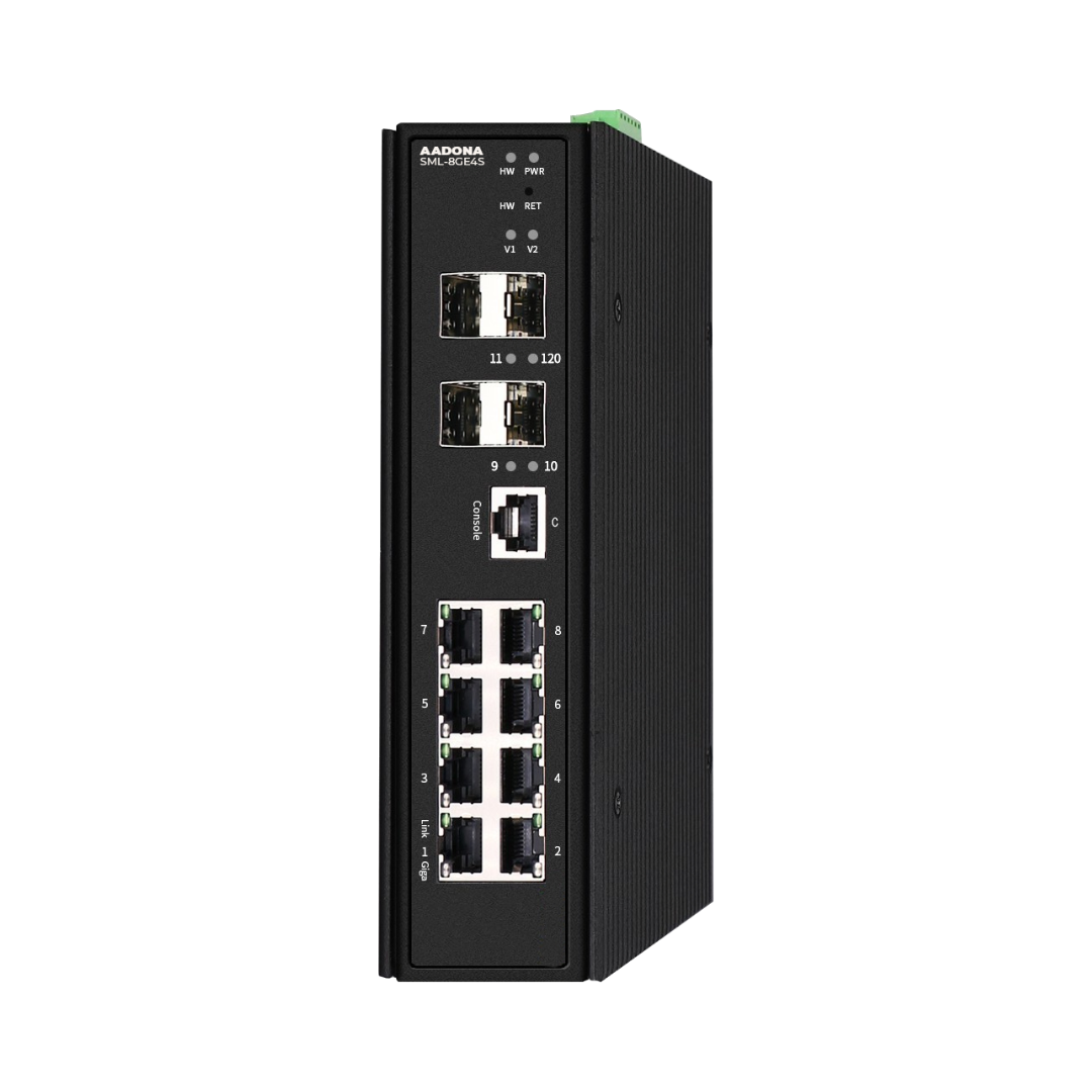 | Introducing Aadona’s SAPPHIRE SML-8GP4S Rugged Switch, a robust and versatile solution engineered to deliver seamless network connectivity in challenging environments. Built with reliability, performance, and durability in mind, this managed PoE access point sets a new standard for rugged networking solutions, making it the ideal choice for industrial, outdoor, and missioncritical applications.