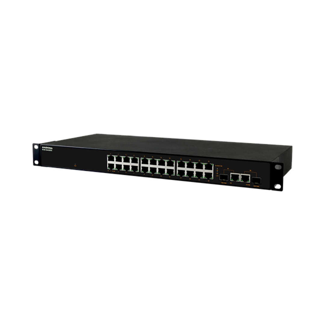 | Introducing the Aadona SAPPHIRE SUS-24GE2C, an industrialgrade Ethernet switch meticulously designed to thrive in challenging industrial environments. Crafted for reliability, durability, and efficient networking, the SAPPHIRE SUS-24GE2C stands as a robust solution ideal for industrial applications where simplicity and reliability are paramount.