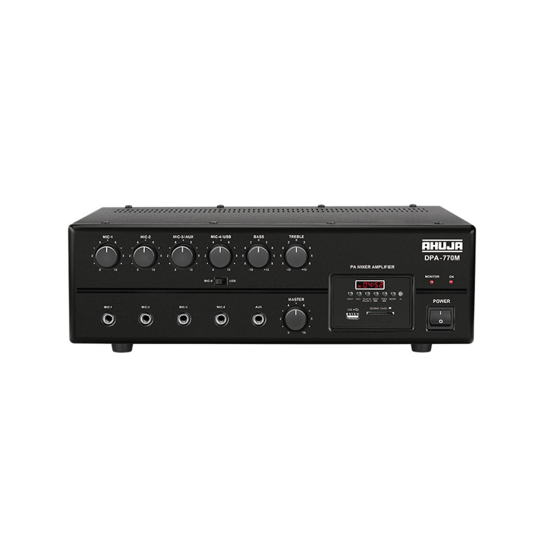 Compact, Mixerful, and reliable, the AHUJA DPA-770M Mixer Amplifier sets a new standard in audio excellence, delivering unmatched performance and reliability for professional sound reinforcement applications. Whether used in large venues, outdoor events, or mobile setups, this amplifier offers the versatility and performance required to deliver exceptional sound quality and ensure a memorable audio experience for audiences.