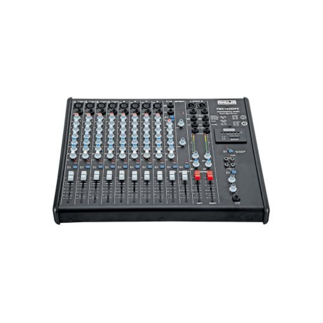 Introducing the Ahuja PMX-1032DFX Built-In USB Mixer , a comprehensive and versatile audio mixing console meticulously engineered to cater to the diverse needs of live sound reinforcement, recording, and multimedia applications. Crafted with precision, flexibility, and user friendly operation in mind, the PMX- 1032 DFX offers exceptional performance and a wide array of features tailored to suit various audio production requirements.