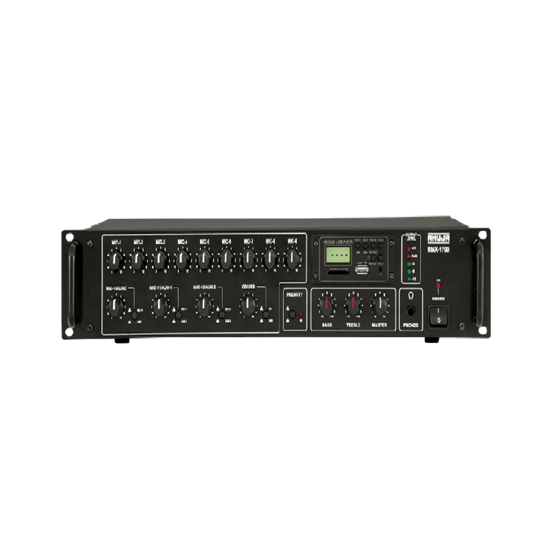 Introducing the Ahuja RMX-1700, a powerhouse PA mixer meticulously crafted to meet the rigorous demands of professional audio environments. With its comprehensive feature set, exceptional sound quality, and robust construction, this mixer stands as a testament to Ahuja’s commitment to excellence in sound reinforcement.