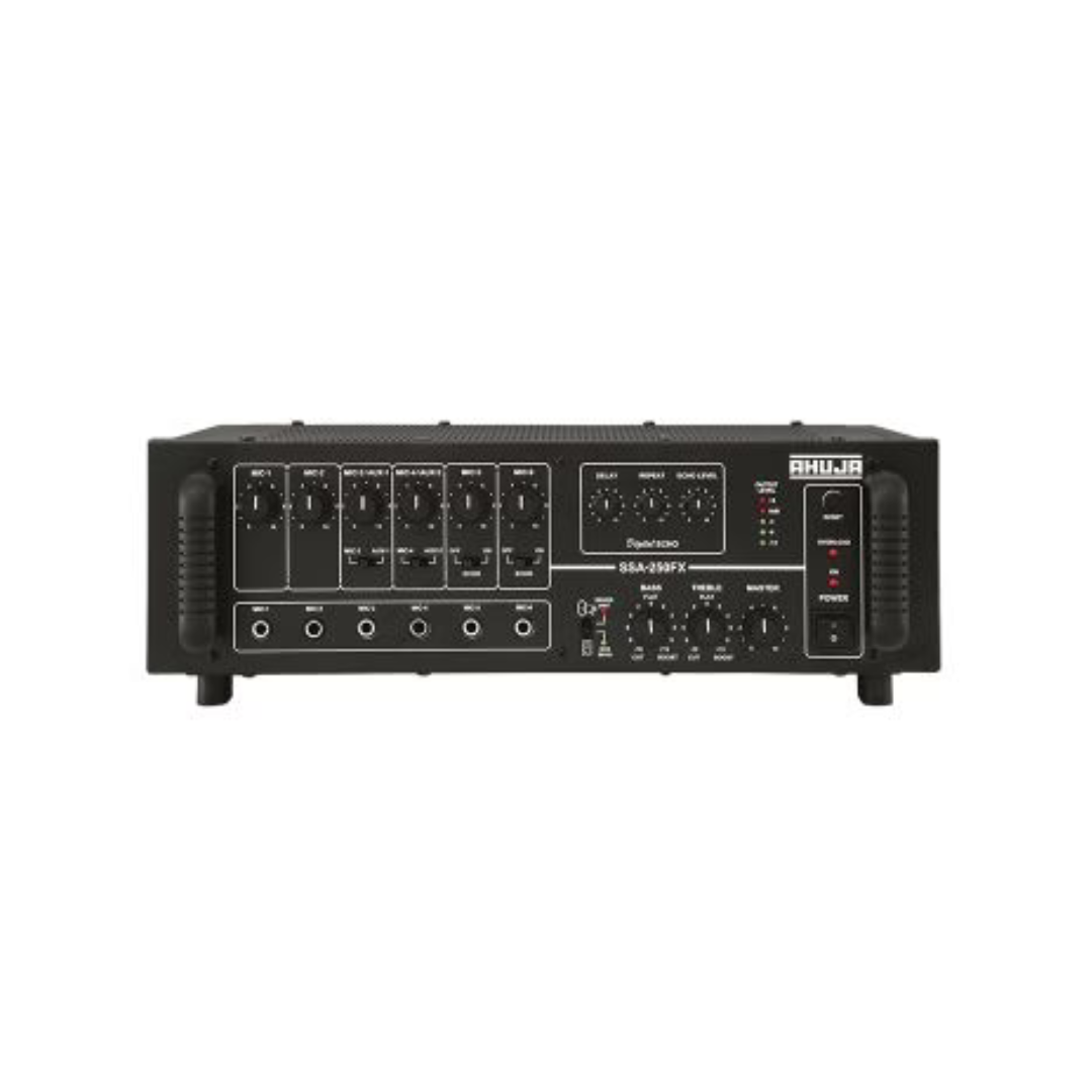 Introducing the AHUJA SSA-250FX Mixer Amplifier, an innovative audio solution meticulously engineered to meet the demands of various sound reinforcement applications. Designed with versatility, reliability, and performance in mind, the SSA-250FX is the perfect companion for small to mediumsized venues, including schools, offices, houses of worship, and conference rooms.