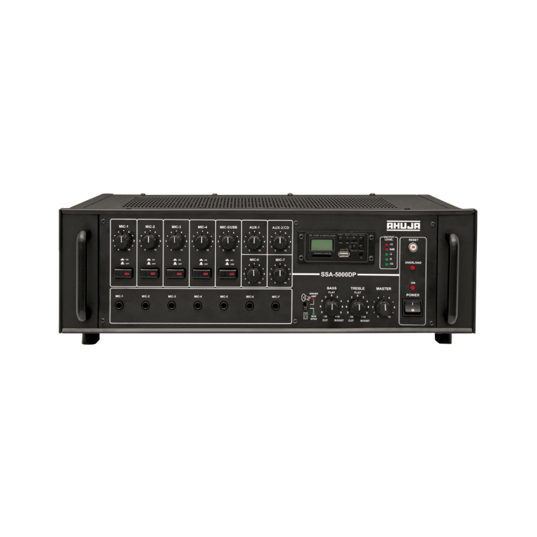 Introducing the AHUJA SSA-5000DP Mixer Amplifier, an exceptional audio Mixerhouse meticulously designed to meet the demanding requirements of professional sound reinforcement applications. Crafted with precision engineering, reliability, and userfriendly operation, the SSA-5000DP represents the pinnacle of performance in the audio industry.