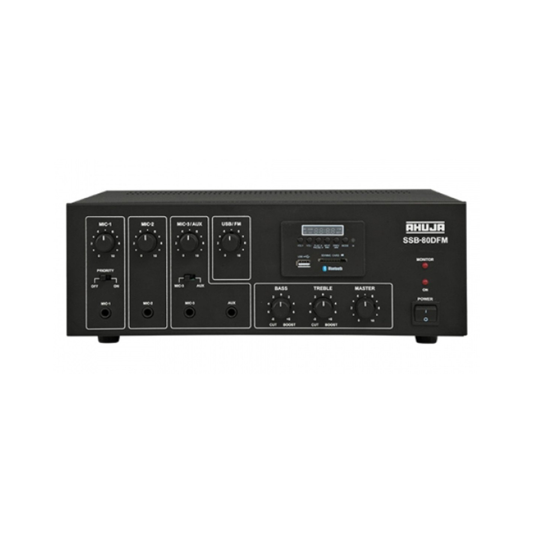 Compact, Mixerful, and reliable, the AHUJA SSB-80DFM Mixer Amplifier sets a new standard in audio excellence, delivering unmatched performance and reliability for professional sound reinforcement applications. Whether used in large venues, outdoor events, or mobile setups, this amplifier offers the versatility and performance required to deliver exceptional sound quality and ensure a memorable audio experience for audiences.