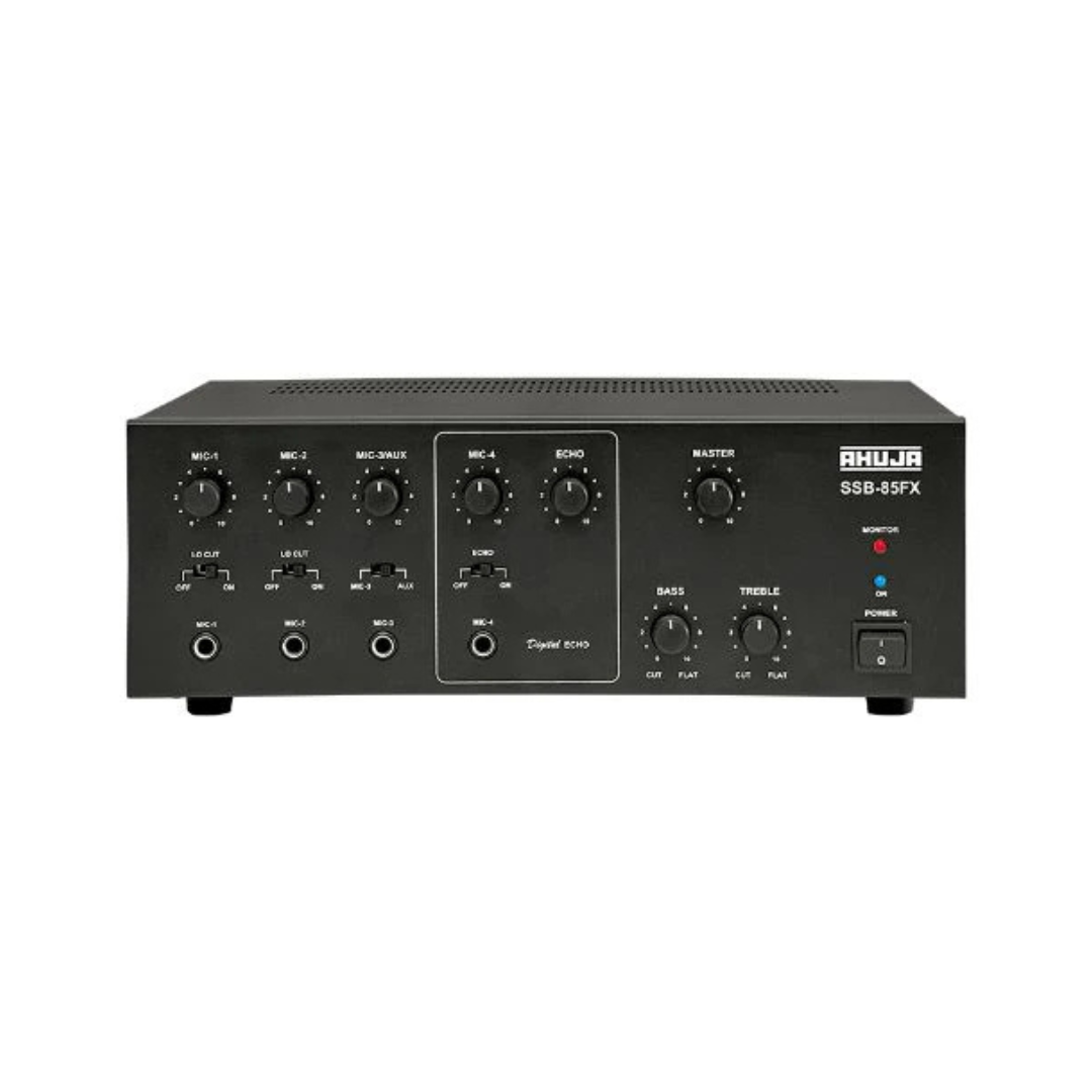 Introducing the AHUJA SSB-85FX Mixer Amplifier, a compact and versatile audio solution meticulously engineered to meet the diverse needs of modern sound reinforcement applications. Designed with reliability, intuitive controls, and robust construction, the SSB-85FX is the perfect companion for small to mediumsized venues such as schools, offices, houses of worship, and conference rooms.