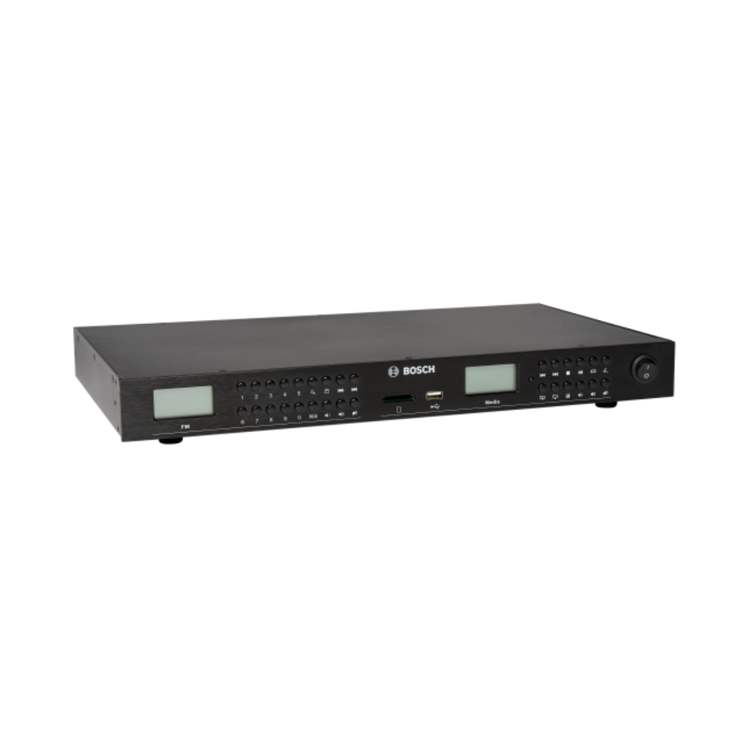 The Bosch PRM-UST Music Source is a high-performance audio solution designed for professional installations. It supports MP3 playback from both USB and SD card inputs, ensuring easy access to digital music. The built-in FM tuner with RDS offers superior radio reception with station presets and digital control for convenient operation.