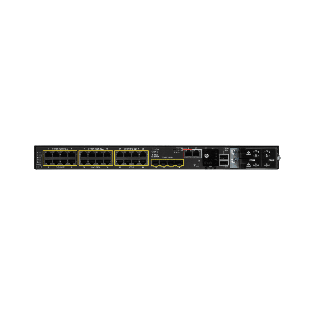 The Cisco IE9300 Rugged Series Industrial Ethernet Switch (model IE-9320-16P8U4X-E) is engineered to meet the toughest demands of industrial networks. Built to endure harsh environments, this switch features 16 Gigabit Ethernet PoE+ ports, 8 2.5G 4PPoE downlinks, and 4 high-speed 10G SFP+ uplinks for exceptional connectivity. Its stackable design provides scalable and flexible deployment in industrial settings, enabling seamless expansion as your network grows.