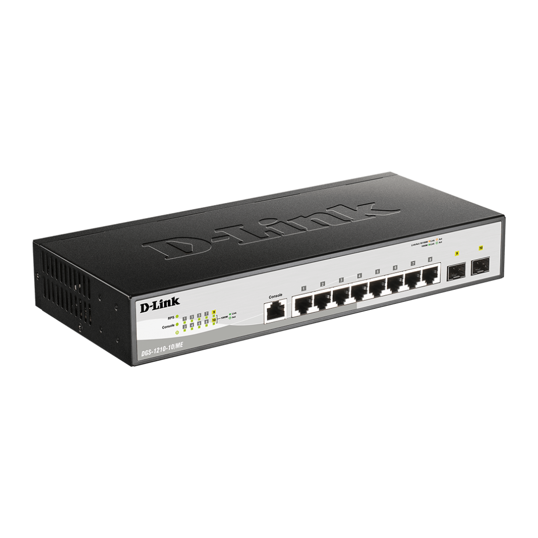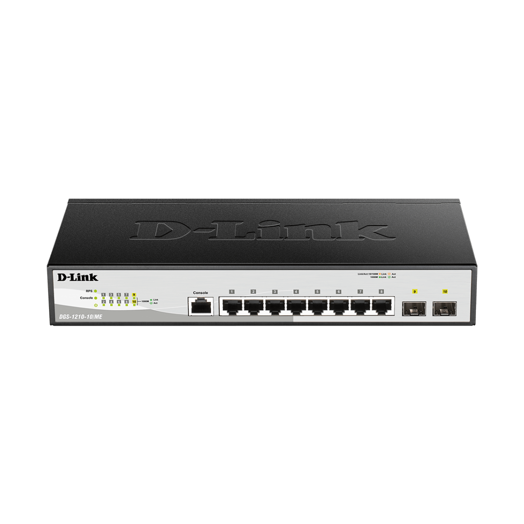 The D-Link DGS-1210-10/ME is a high-performance 10-port Gigabit Metro Ethernet switch, offering superior network connectivity for businesses. It supports Layer 2 switching, making it ideal for metro Ethernet applications, ensuring seamless data transmission across extended networks. The DGS-1210-10/ME features ten Gigabit Ethernet ports, delivering high-speed connectivity and efficient data routing. With a robust, compact design, it is built to handle traffic-heavy environments, making it perfect for small to medium-sized enterprise networks. The switch also offers advanced features such as VLAN support, QoS, and IGMP snooping, ensuring optimal bandwidth allocation and reduced network congestion. Its simple plug-and-play installation and reliability help minimize downtime and improve overall network performance. Whether expanding a network or building a new one, the DGS-1210-10/ME is the ideal solution for businesses seeking an affordable, high-quality switch for their metro Ethernet needs.
