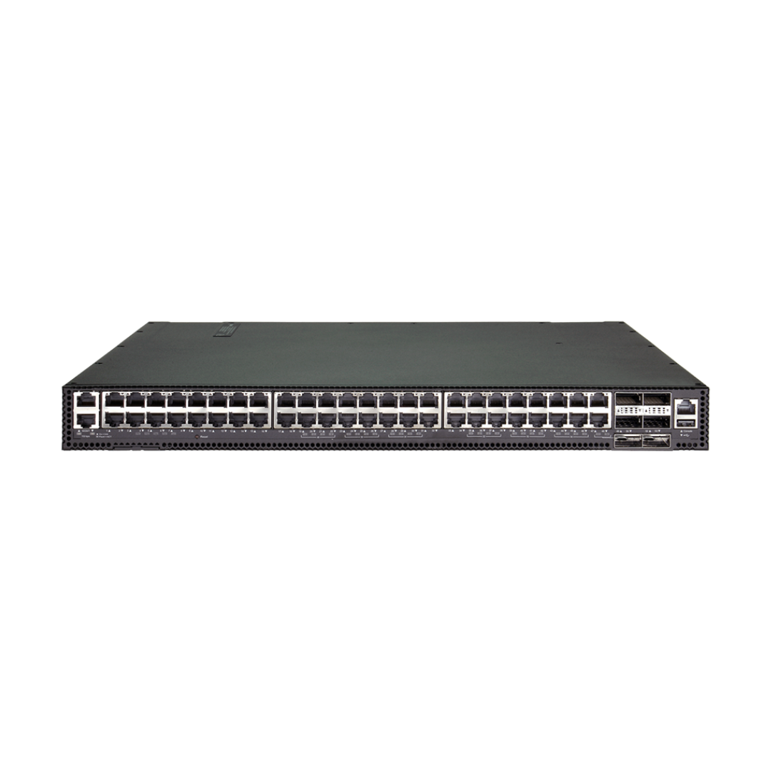 The D-Link DXS-F3610-54T switch is engineered for high-performance networking, with 48 10G BASE-T ports and 6 x 100G QSFP28 ports, ideal for large-scale enterprise, data center, and campus applications. This Layer 3 switch supports Open Flow v1.4 for seamless integration into SDN-based networks. It’s designed for flexibility, featuring modular power supplies with a 1+1 redundancy configuration for enhanced reliability. The switch is also equipped with five fan modules for efficient cooling, ensuring consistent performance under heavy load. An Intel Atom C3558 processor, along with 16GB of DDR4 memory, guarantees fast data processing and handling of high-throughput traffic. For easy maintenance, it includes a switch locator LED and ID tag to simplify management. With its advanced features, the DXS-F3610-54T is a powerful solution for businesses looking to scale their networks effectively and efficiently.