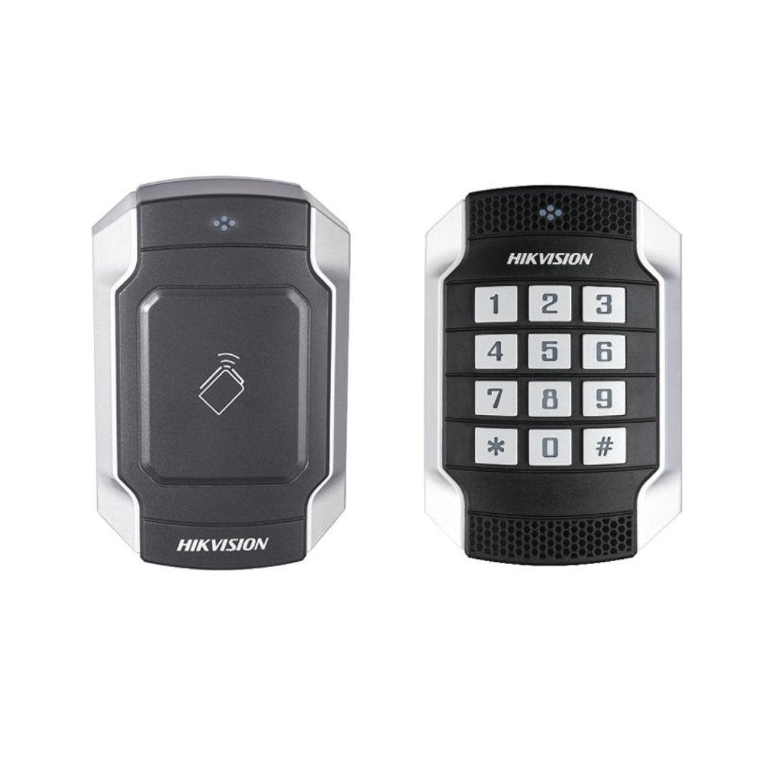 The Hikvision DS-K1104 Series sets itself apart by integrating a 2.8″ LCD screen with a keypad and card reader into one access control device. This series supports MIFARE or EM cards and includes a 12-key keypad for PIN-based authentication. The addition of an LCD display enhances user interaction, showing card information, instructions, and prompts for a seamless access experience.