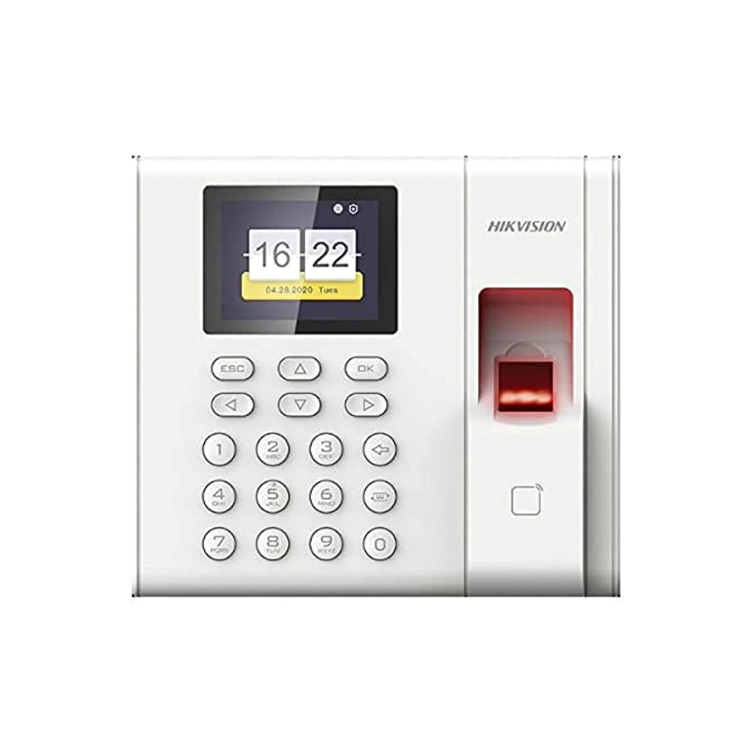 The Hikvision DS-K1A8503 Value-series terminal is ideal for comprehensive time attendance. It supports 1,000 users, fingerprint or card entry, and 100,000 event logs . It accommodates 32 shift types and six attendance statuses, with report export via USB and multilingual support . Built-in optical module ensures fast (<1 s) fingerprint recognition. TCP/IP connectivity for centralized deployment.