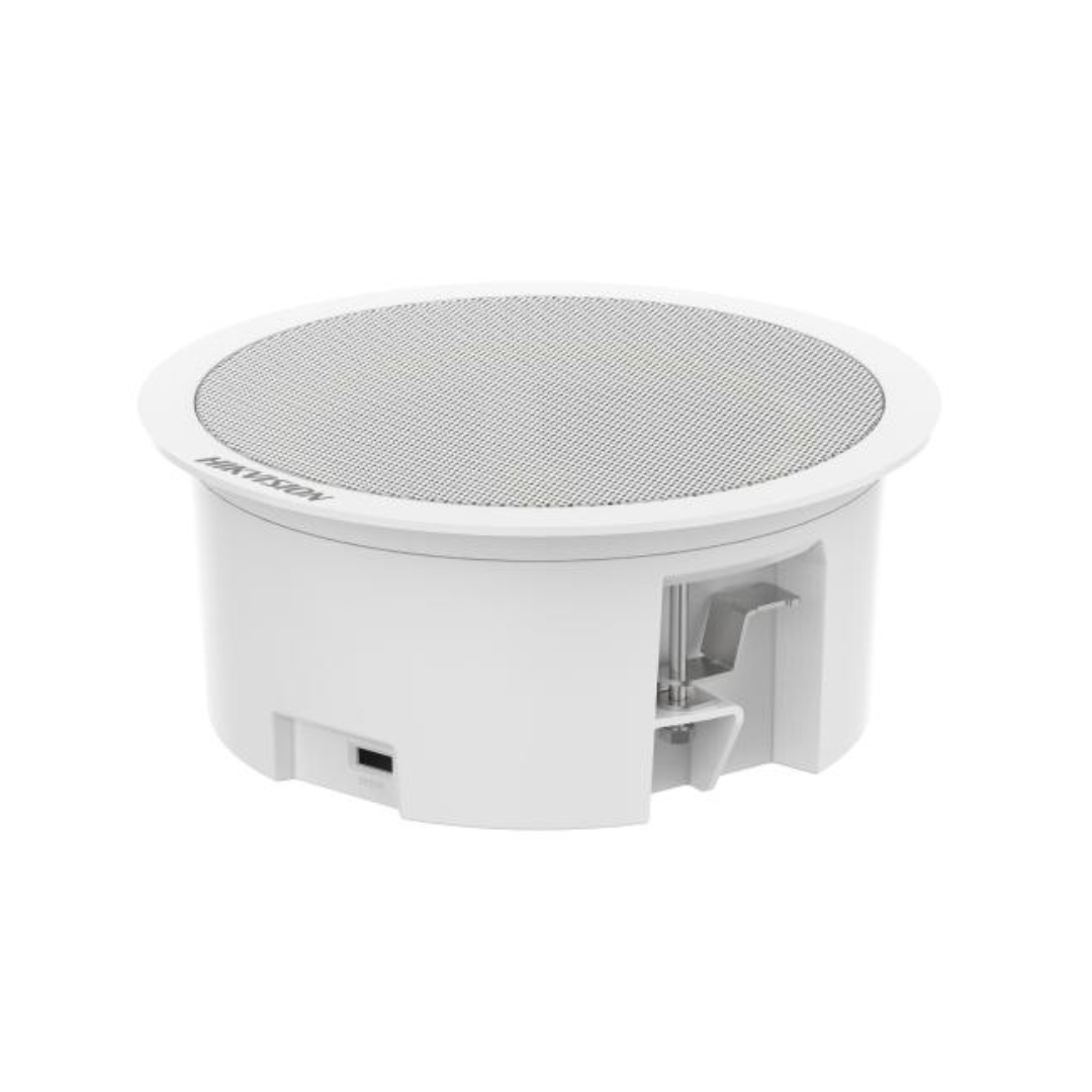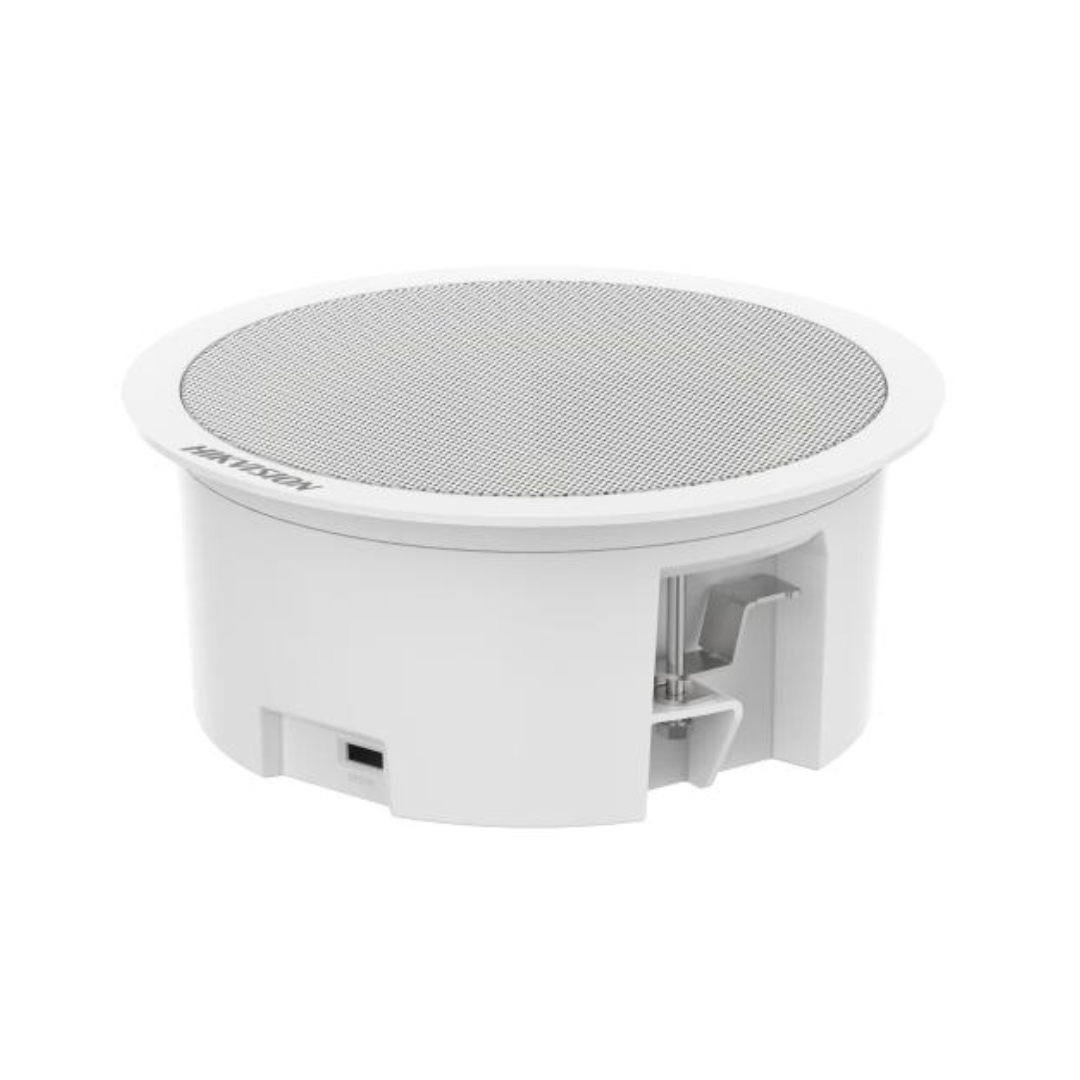 | The Hikvision DS‑QAZ1203G1‑BE is a smart 3 W network ceiling speaker engineered for indoor public address, paging, and emergency alerts. Powered via PoE (802.3at) or 12 V DC, it produces 97 dB SPL, ensuring clear sound for classrooms, offices, and retail spaces