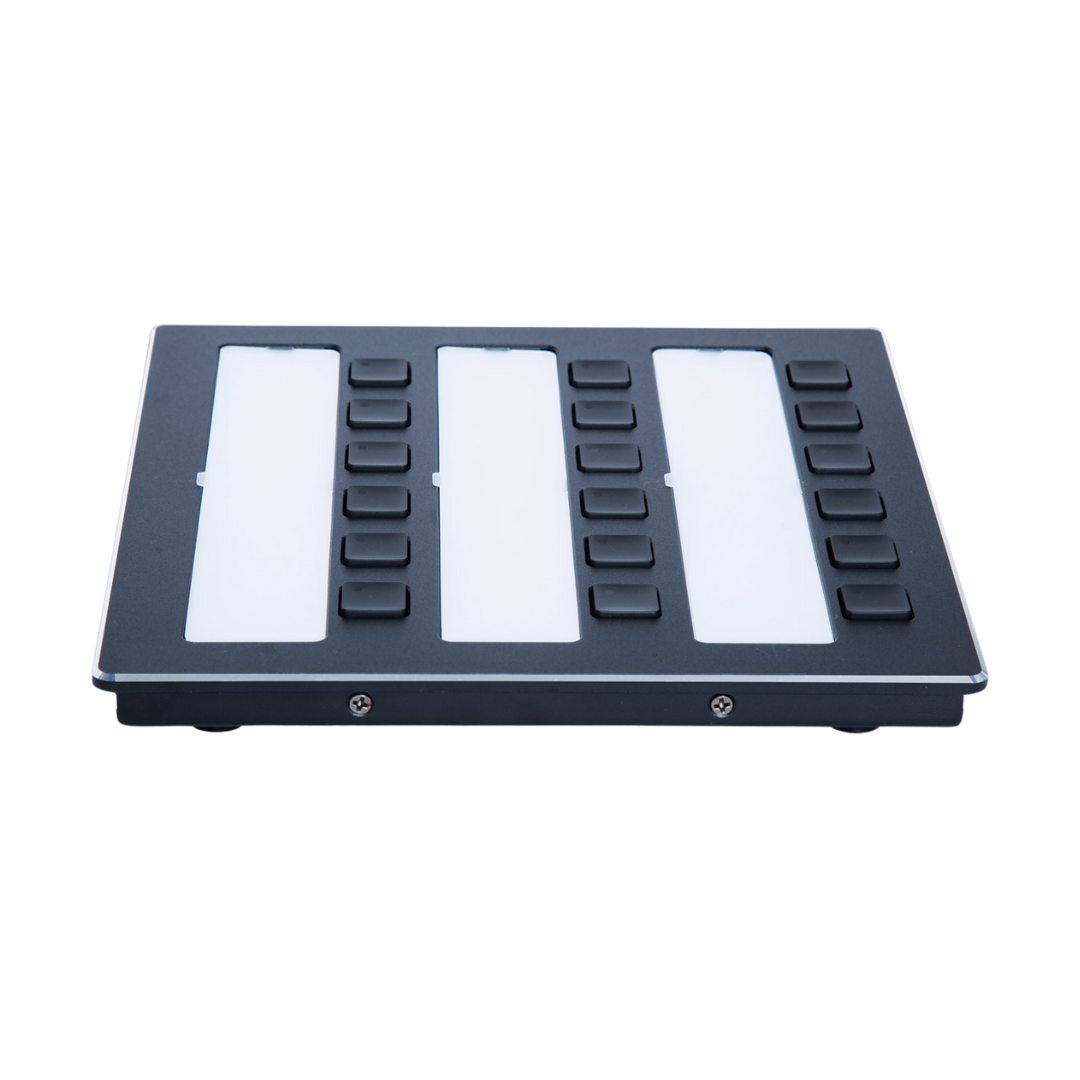The Honeywell DKM Plus Digital Key Module is an accessory designed to extend the capabilities of DCS Plus digital call stations within VarioDyn public address and voice alarm systems. Each DKM Plus module offers 18 freely configurable keys and corresponding LEDs, enabling customized control over various system functions. Up to six DKM Plus modules can be connected to a single DCS Plus station, allowing for a total of 120 programmable keys and LEDs.