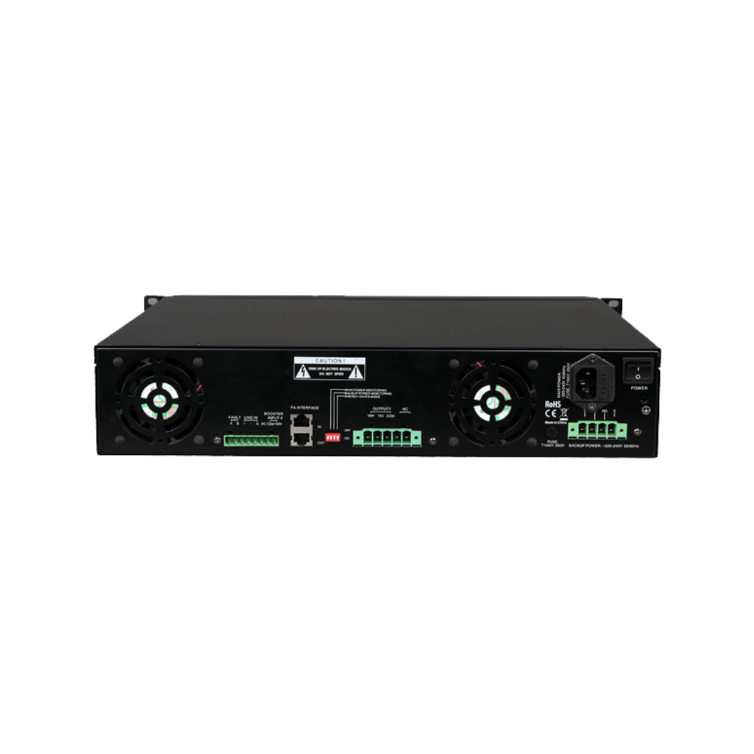 The amplifier is equipped with comprehensive self-protection mechanisms against overheat, overcurrent, overvoltage, undervoltage, overload, and short circuits. These features ensure the longevity and reliability of the system.