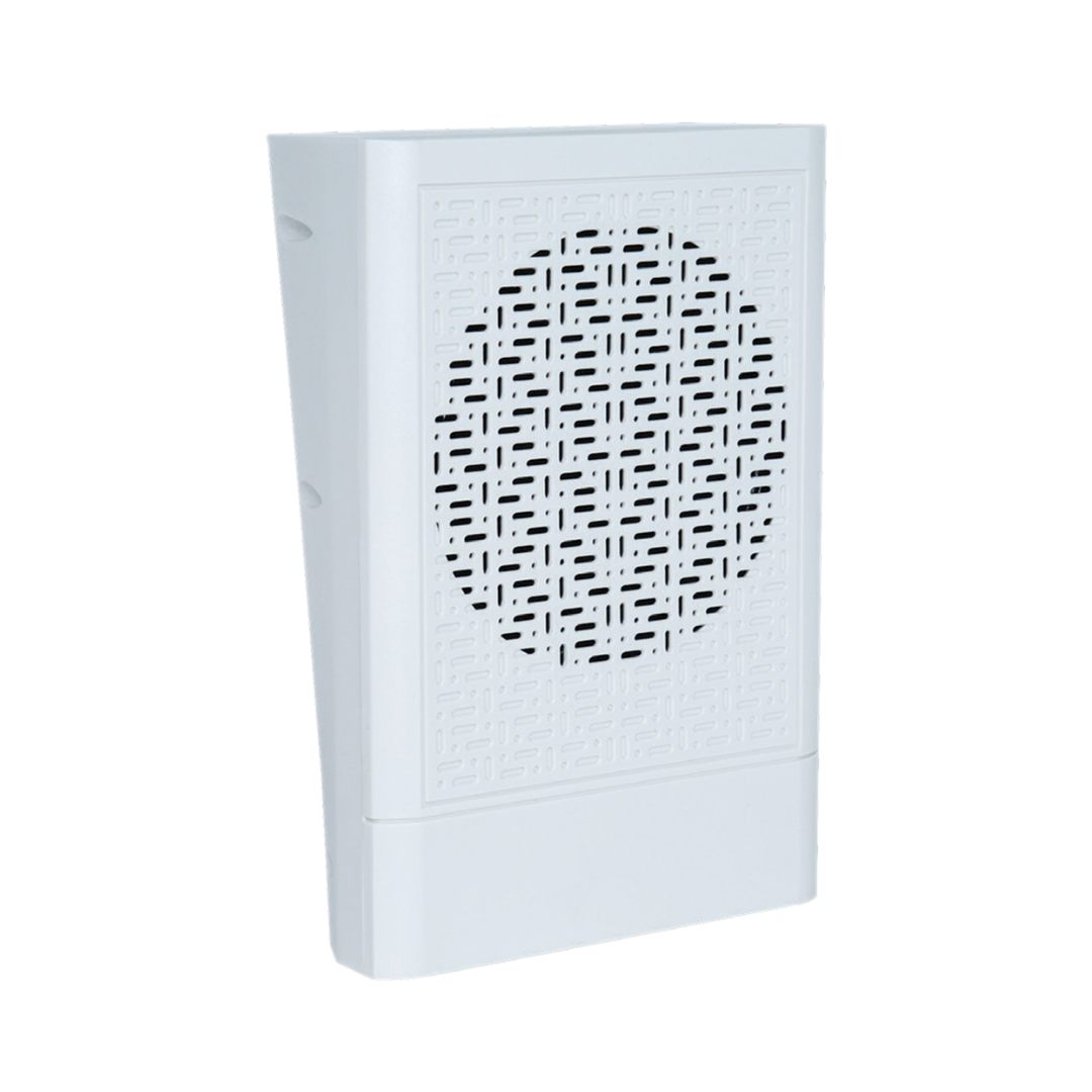 The Honeywell HN-WM06 Wall Mount Loudspeaker is engineered to deliver high-quality audio performance for public address and background music systems. Featuring a 6-inch (150 mm) full-range driver, it ensures clear and intelligible sound across a frequency range of 110 Hz to 15 kHz, making it ideal for environments like schools, offices, hotels, and retail spaces. Constructed with a durable ABS enclosure and grille, the HN-WM06 is designed to withstand humid conditions, ensuring longevity and consistent performance. Its compact dimensions (260 x 180 x 120 mm) and lightweight design (1.3 kg) facilitate easy installation on walls using the rear mounting hole. The built-in 100V transformer offers flexible power tapping options of 6W, 3W, and 1.5W, allowing integration into various PA system configurations. With a sensitivity of 92 dB SPL and a maximum SPL of 99 dB at 1 meter, it provides ample sound coverage for medium-sized areas.
