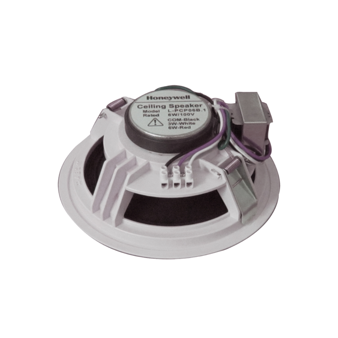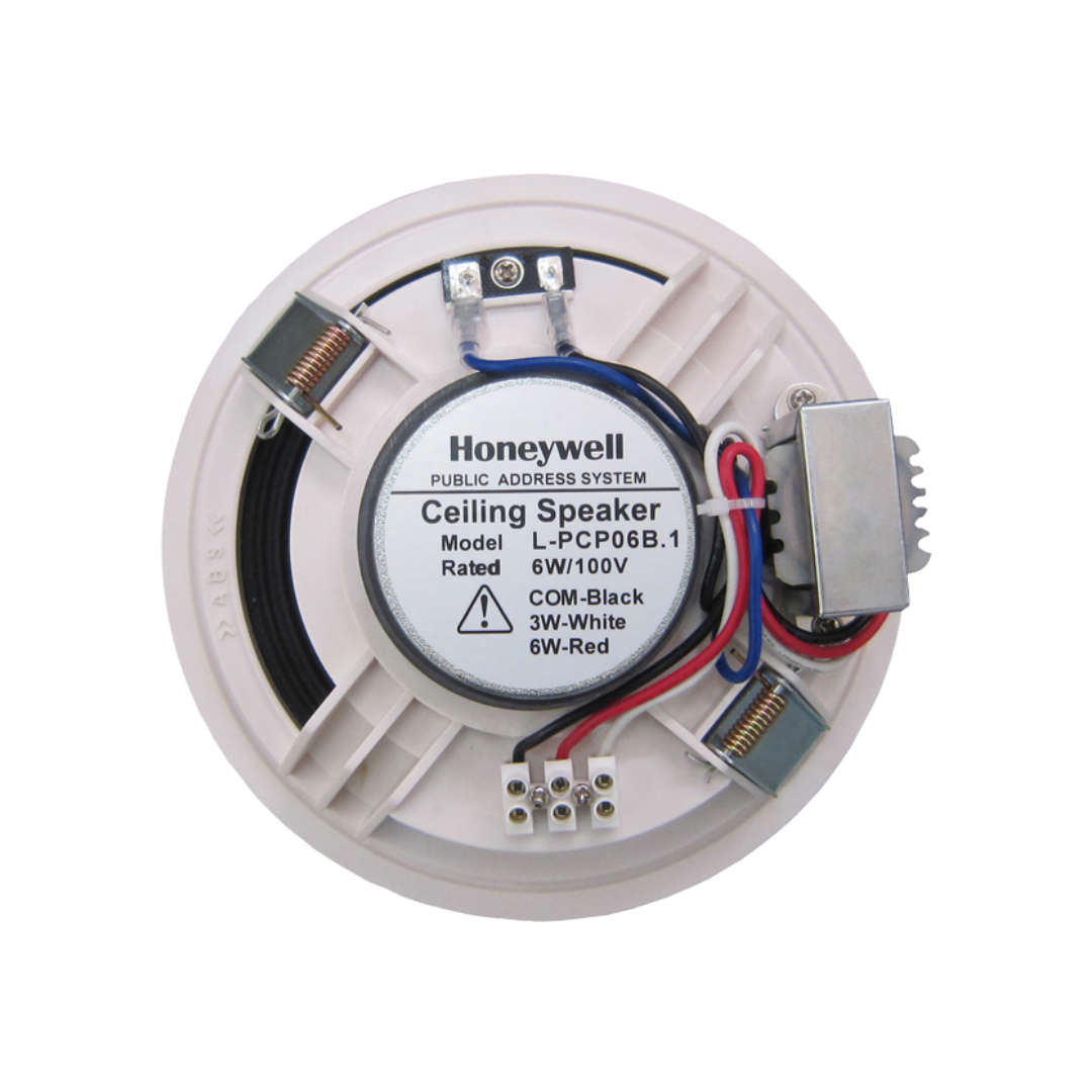 Honeywell?s L-PCP06B is engineered to deliver consistent and high-quality sound in a range of commercial environments. Rated at 6W with multiple power tapping options, it allows flexible configuration for different room sizes and acoustic needs. The speaker features a sturdy metal grille and steel housing, ensuring long-lasting protection against wear and corrosion. Its wide frequency response enables rich audio reproduction, suitable for both speech and ambient music. Designed for flush ceiling mounting, the L-PCP06B integrates easily into architectural spaces like hospitals, offices, hotels, and retail stores. It offers uniform sound dispersion across rooms, reducing dead spots and echo effects. This speaker is compatible with 100V line systems, simplifying integration with existing PA infrastructure. Compact, durable, and acoustically balanced, the L-PCP06B is a practical choice for environments requiring clean, clear, and reliable voice output.