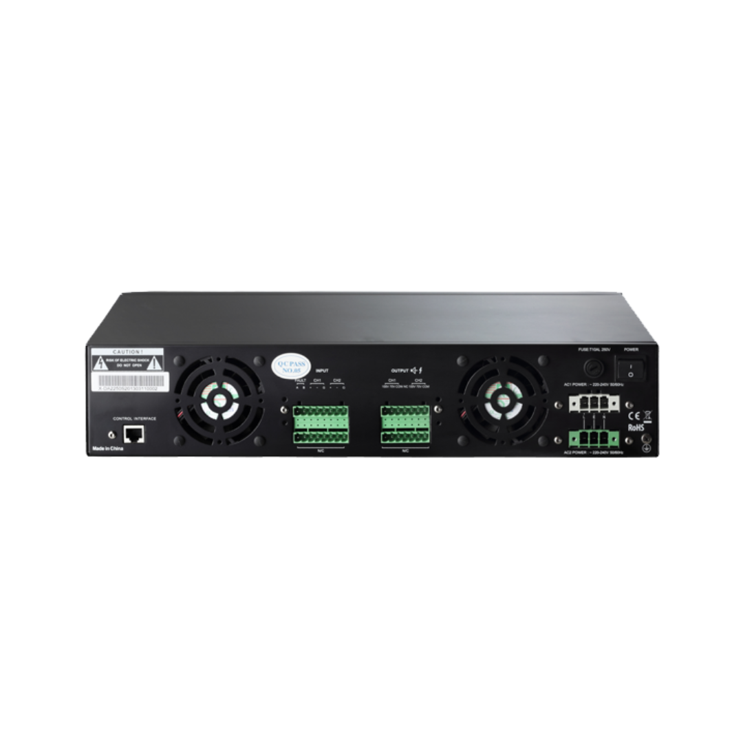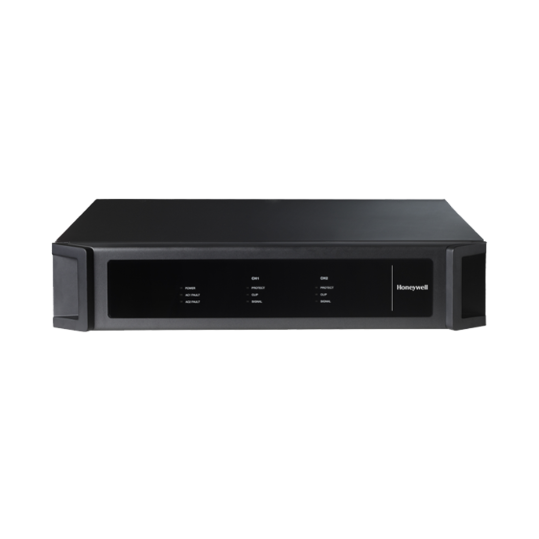 Honeywell’s X-DA2250 High-Efficiency Power Amplifier is engineered to deliver superior audio performance in public address and voice alarm systems. This two-channel 250W Class-D amplifier boasts a lightweight design with a UL94V-0 fireproof ABS front panel, ensuring durability under extreme conditions.