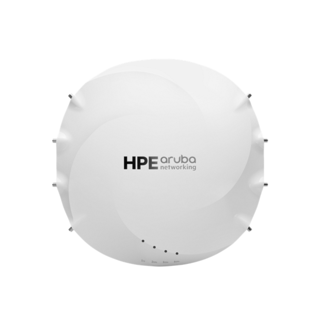 Tri-radio architecture and 4×4 MIMO ensure reliable performance in high-density environments. External antennas enable precise coverage planning, while Aruba AI technologies and enterprise security features ensure consistent, protected connectivity.