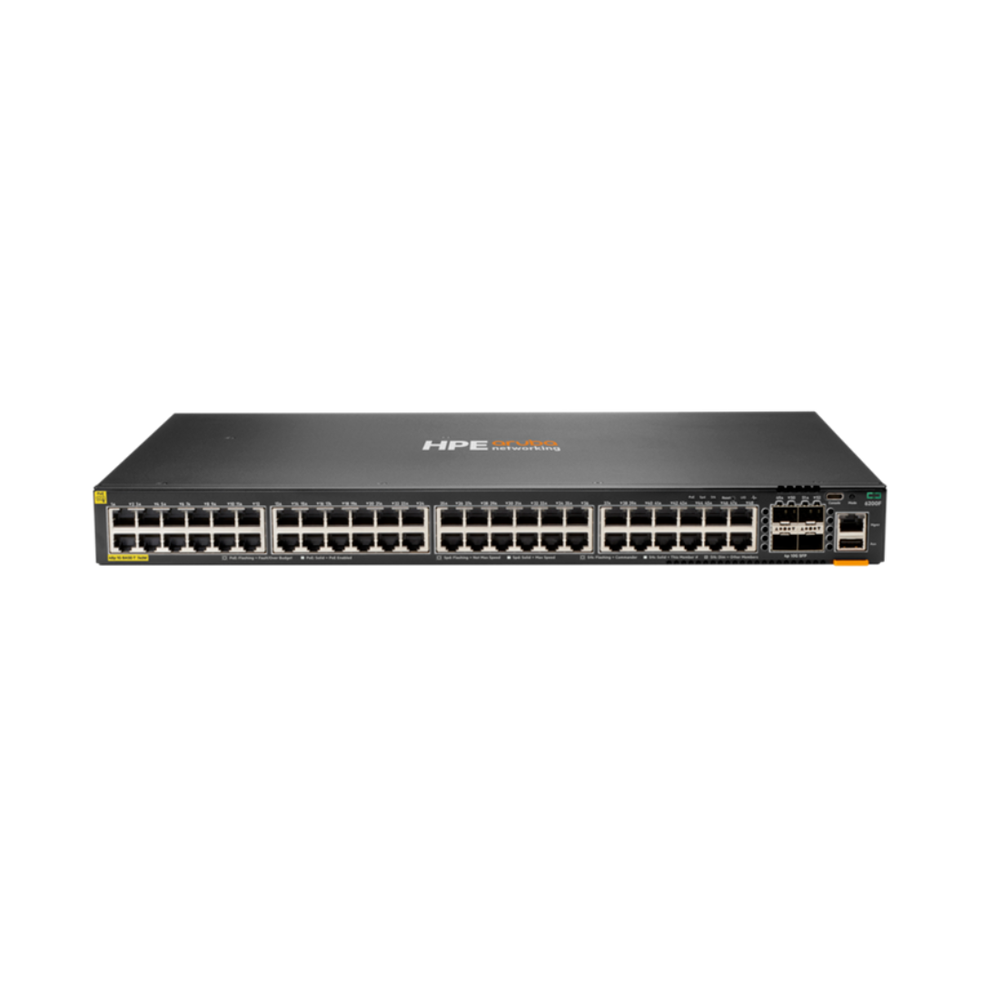 HPE Aruba Networking CX 6200F 48G Class4 PoE 4SFP+ 740W Switch is designed for high-demand enterprise networks requiring significant PoE delivery. HPE Aruba Networking provides forty-eight Gigabit ports and a 740W PoE budget to power APs, IP phones, cameras, and other high-power devices.
