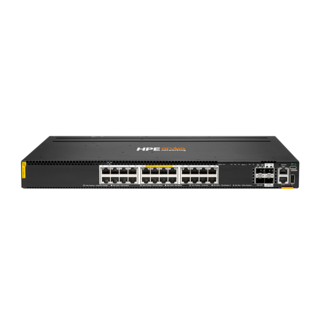 HPE Aruba CX 6300F 24p Class4 PoE switch delivers reliable enterprise-grade Layer 2/3 connectivity for edge and branch deployments. The switch features 24 access ports supporting Class4 PoE+ for powering Wi-Fi APs, IP phones, cameras, and other PoE devices. Four SFP56 50G uplinks ensure high-speed backbone connectivity and scalable expansion.