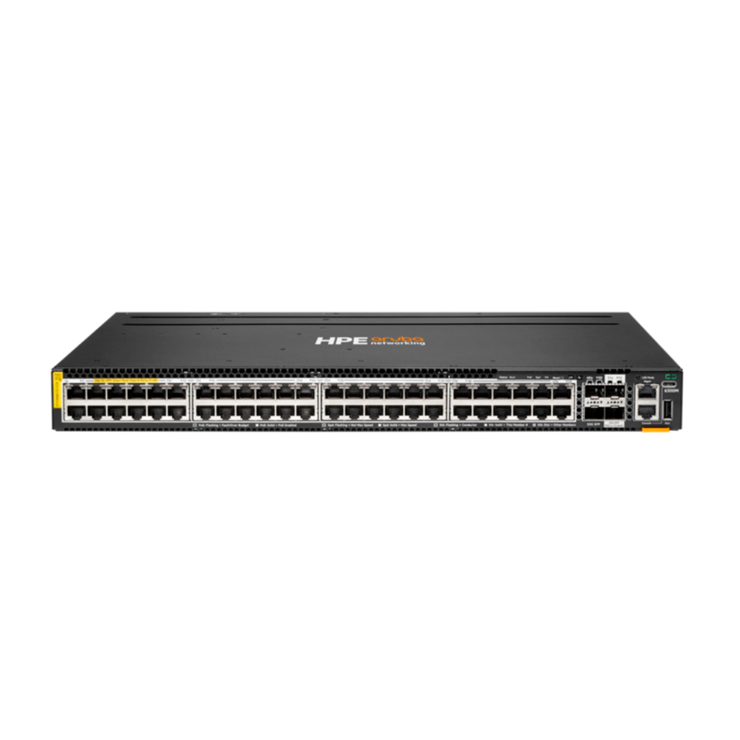 The HPE Aruba CX 6300M 48p Smart Rate switch is purpose-built for high-performance enterprise networks that require multi-gigabit access, PoE support, and scalable uplinks. With 48 Smart Rate ports supporting 1G, 2.5G, and 5G speeds, it delivers seamless connectivity for access points, VoIP phones, IP cameras, and other power-hungry devices using Class8 PoE. The switch also offers 2 SFP56 50G and 2 SFP28 25G uplinks, providing high-speed aggregation and backbone connectivity for demanding workloads. Aruba CX OS enhances the switch with Layer2/3 routing, network automation, monitoring, and analytics, allowing IT teams to optimize performance and quickly troubleshoot issues.
