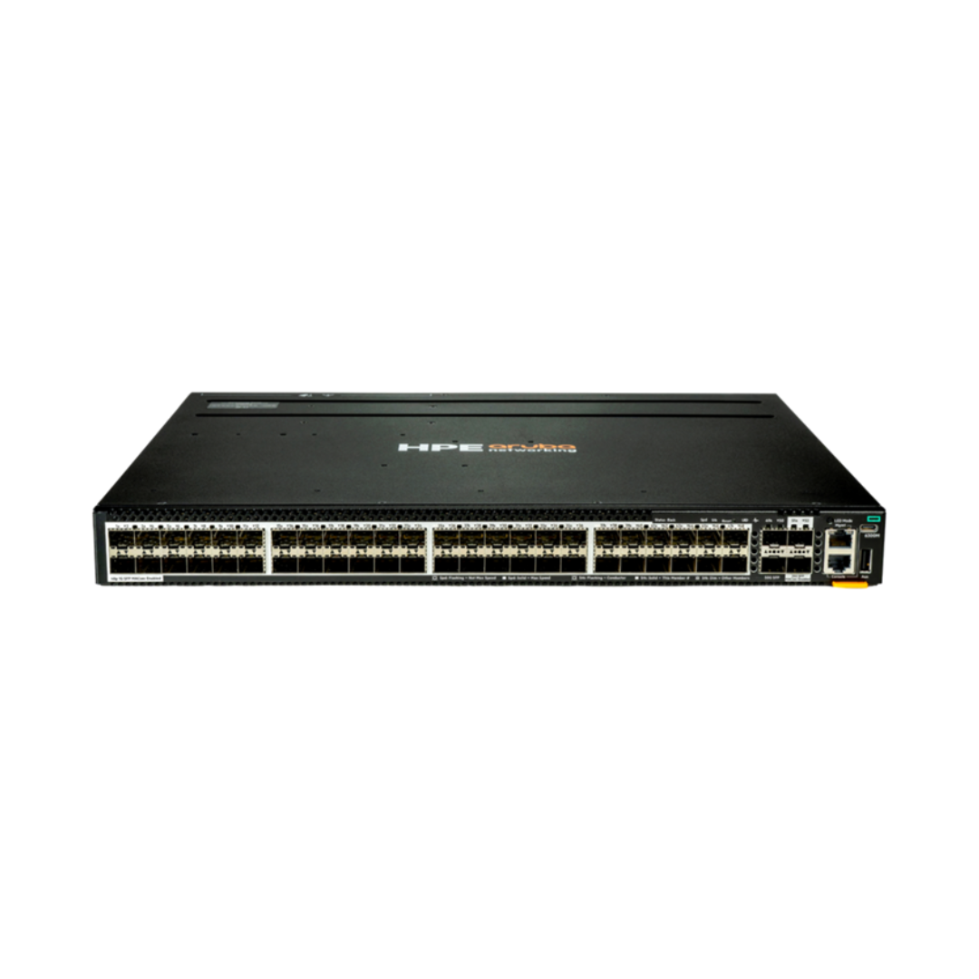 | The HPE Aruba CX 6300M 48p SFP MACsec TAA switch provides high-speed connectivity with enterprise-grade security. It offers 48 SFP 1GbE access ports and 2×50G SFP56 plus 2×25G SFP28 uplinks, enabling scalable backbone and aggregation network design. Hardware-based MACsec encryption ensures secure data transmission across all ports, protecting sensitive enterprise traffic from interception or tampering.