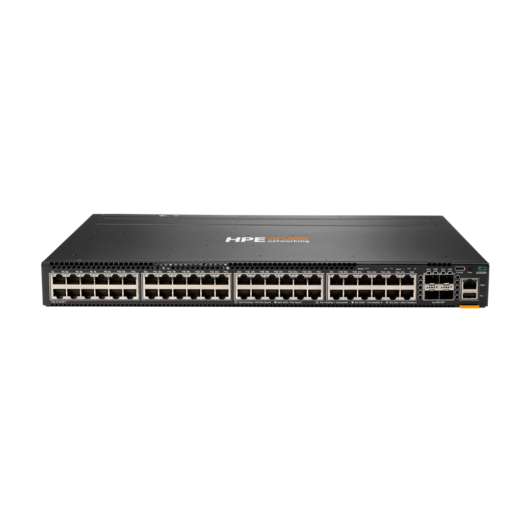 HPE Aruba Networking CX 6300M 48?port 1GbE and 4?port SFP56 Switch is engineered to provide high?performance, secure, and scalable connectivity for enterprise access, campus, and branch networks. With 48 Gigabit Ethernet access ports and four versatile SFP56 uplinks, this switch enables high?speed backbone connections and efficient traffic aggregation to core or distribution layers. Built on the CX series architecture with powerful ASICs and Aruba?s AOS?CX operating system, it delivers advanced Layer2 and Layer3 features including VLAN segmentation, ACLs, QoS prioritization, dynamic routing, and multicast optimization.