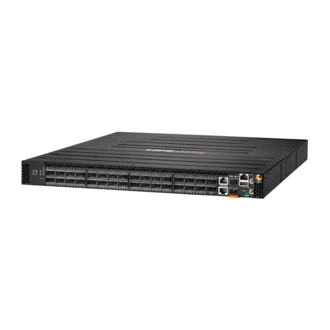 Its six fans and dual power supplies ensure reliability and efficient thermal management. Aruba AOS-CX provides automation, analytics, and API-based control for simplified network operations.