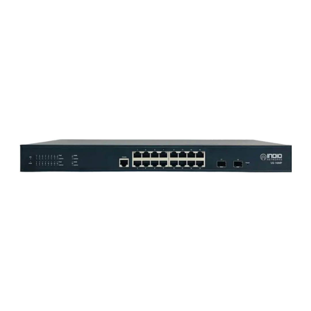 | The Indio Networks US‑16MP is a professional-grade 16‑port managed PoE+ switch designed to meet the demands of modern enterprise, education, retail, and hospitality networks. Delivering a generous 480 W PoE power budget, it supports up to 30 W per port, perfect for powering a large number of wireless access points, IP cameras, or IP phones.
