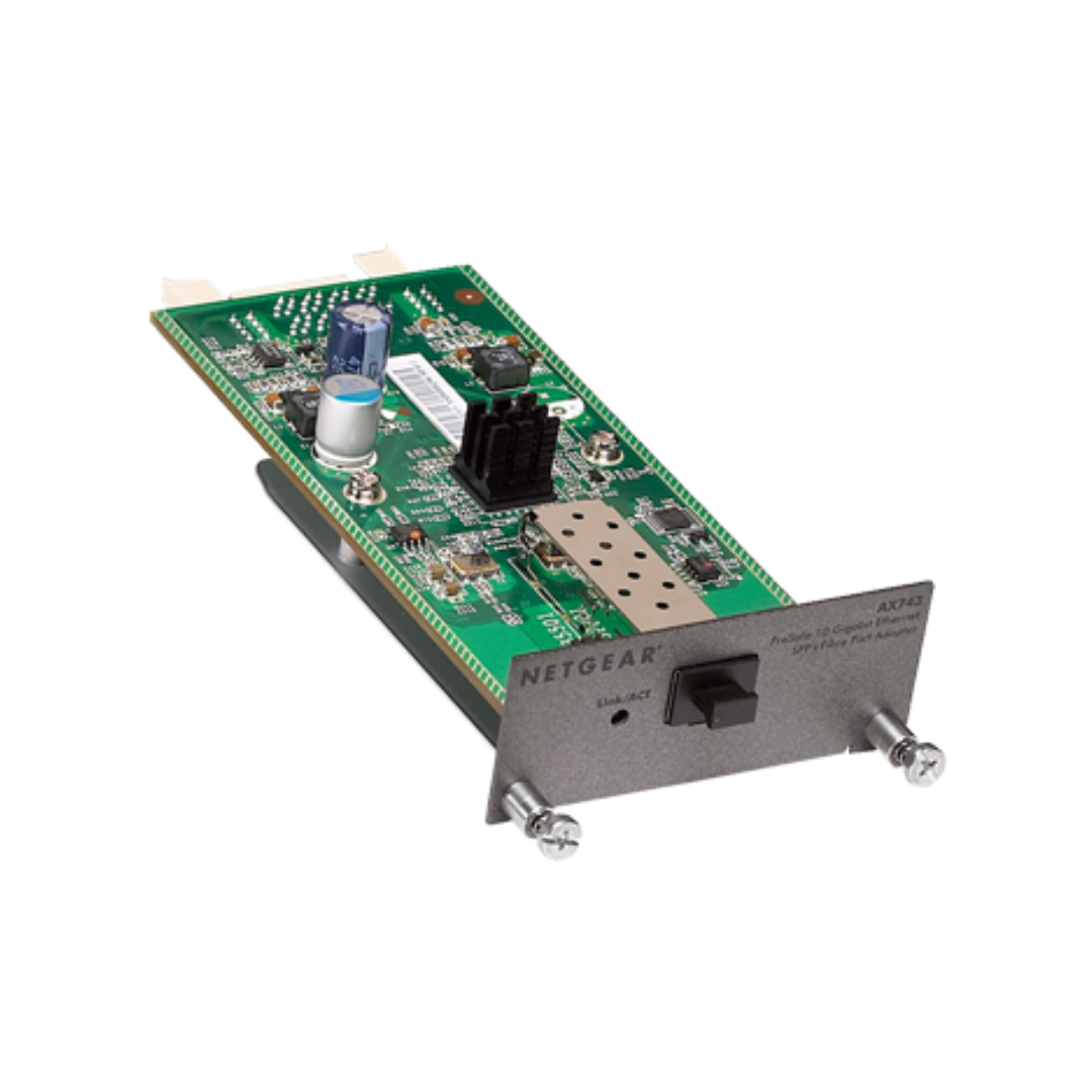 The Netgear AX743 – ProSAFE 10 Gigabit Ethernet SFP+ Fiber Port Adapter offers high-speed connectivity for modern network infrastructures. Engineered for businesses and enterprises, this adapter enables ultra-fast data transfers up to 10Gbps, ensuring minimal latency and maximum efficiency. The AX743 is equipped with SFP+ fiber port support, delivering exceptional performance and scalability for demanding applications such as virtualization, cloud computing, and large-scale data transfers.
