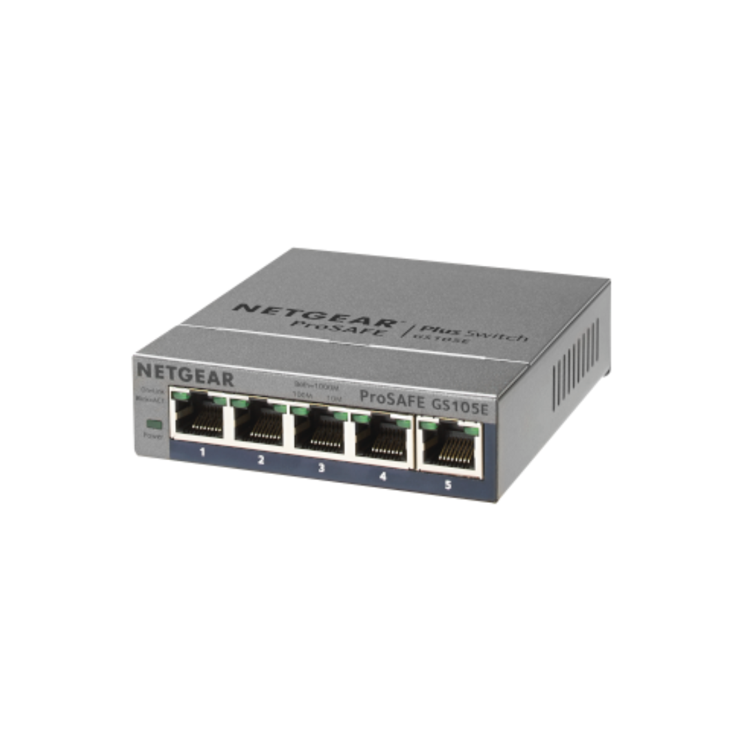 The Netgear GS105E 5-Port Gigabit Ethernet Plus Switch is the perfect networking solution for small to medium-sized home or office environments. With five high-speed Gigabit Ethernet ports, this switch provides seamless connectivity and fast data transfer, making it ideal for connecting computers, printers, gaming consoles, and other networked devices.