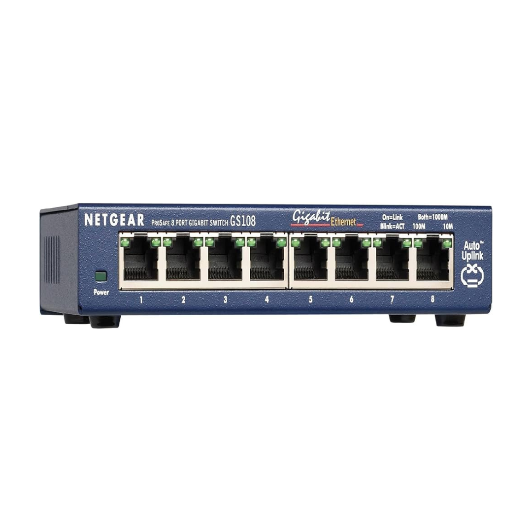 Whether you need to expand your existing network or set up a new one, the GS108 provides a hassle-free, reliable solution. Its compact size makes it perfect for small spaces, while its durability ensures long-lasting performance. Upgrade your home or office network with the Netgear GS108, where reliability meets convenience.