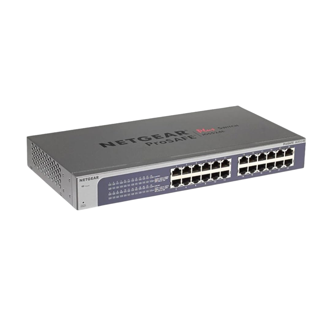 The Netgear JGS524E 24-Port Gigabit Ethernet Plus Switch is a powerful and efficient solution for any network setup, whether at home or in a business environment. Featuring 24 gigabit Ethernet ports, it delivers high-speed connectivity with up to 2000 Mbps per port in full-duplex mode, ensuring smooth data transfer and low latency.