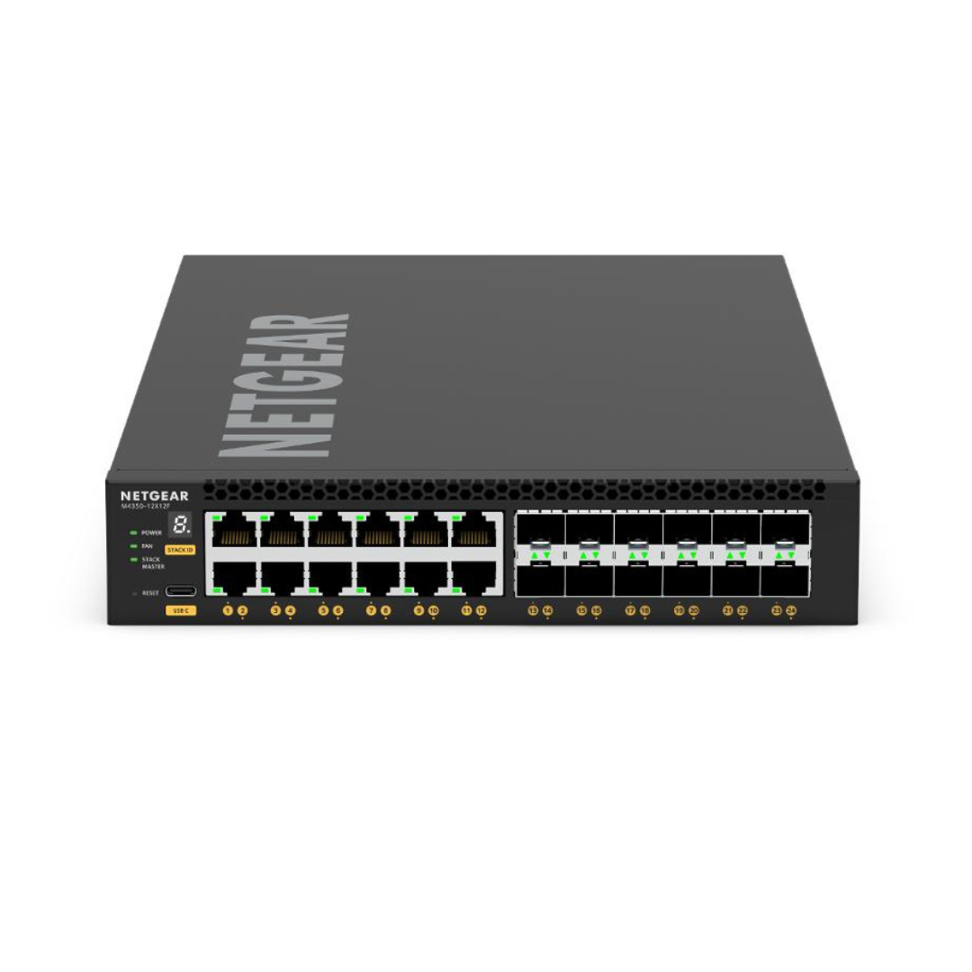 Ideal for AV over IP applications, the M4350-12X12F integrates seamlessly with various IT systems, offering Layer 3 routing, enhanced security features, and comprehensive management options. Users benefit from improved network reliability and efficient traffic handling, all while maintaining full control with an intuitive web interface and CLI options. This managed switch is perfect for any organization looking to expand its network, offering performance, scalability, and security. Whether used for video streaming, high-speed data transfer, or enterprise IT services, the Netgear M4350 guarantees optimal performance for modern network needs.