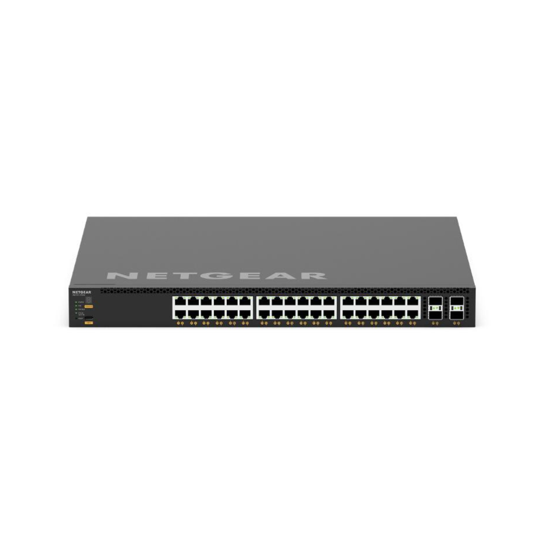 The Netgear M4350-36X4V Fully Managed Switch (XSM4340CV) is a state-of-the-art networking solution engineered for advanced AV over IP and IT systems. It is equipped with 36 high-speed 10G/Multi-Gigabit PoE++ ports and four SFP28 25G ports, making it an excellent choice for high-performance environments where both power delivery and data transmission are critical.