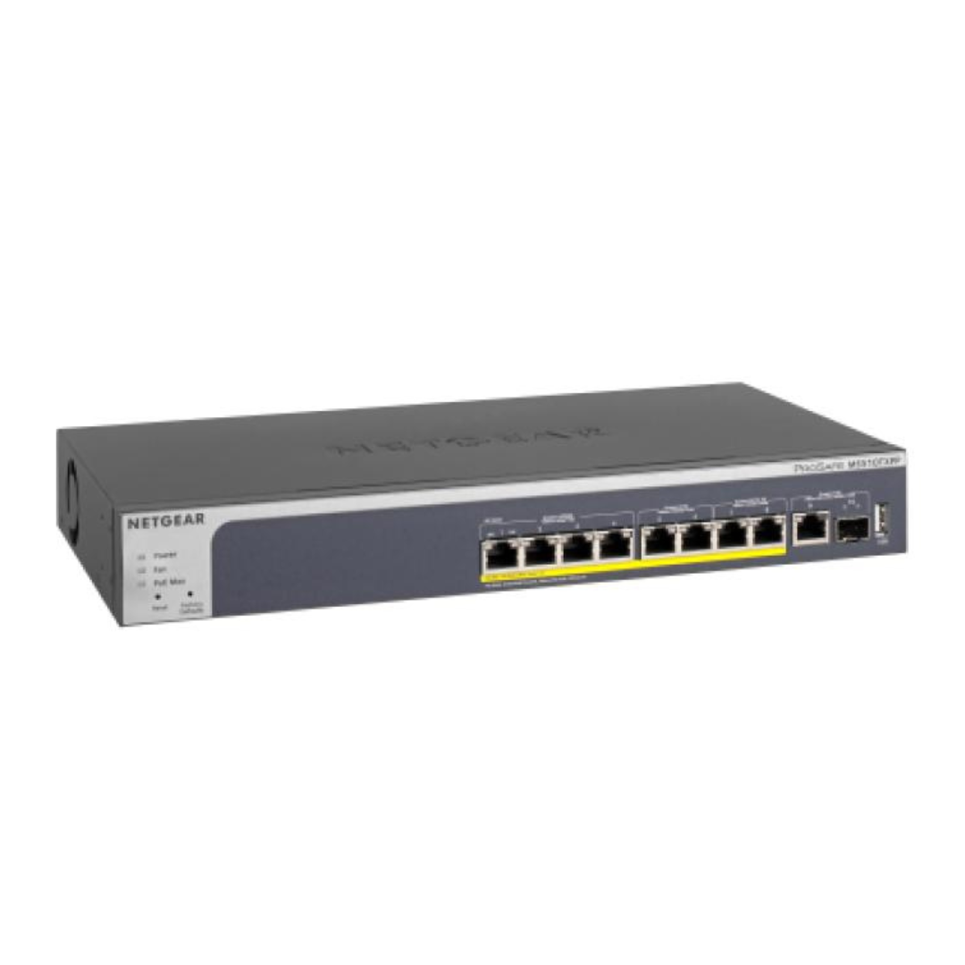 The Netgear MS510TXPP is an advanced 8-port Multi-Gigabit Ethernet PoE+ Smart Switch, designed to optimize your network performance. It features two dedicated 10-Gigabit uplink ports (one copper and one SFP+) to handle high-bandwidth data transfers, ensuring your network can scale effortlessly for demanding applications. The switch offers PoE+ (Power over Ethernet) support, allowing you to power devices such as IP cameras, access points, and phones through the same Ethernet cable that carries data, reducing the need for extra wiring. With its whisper-quiet operation, it’s perfect for quiet office environments, maintaining a peaceful working space. Whether you’re expanding your network or building from scratch, the Netgear MS510TXPP provides a reliable, scalable, and cost-effective solution that supports high-speed, secure connectivity for all your devices. Its port-mix flexibility makes it ready for anything, enabling you to manage your network with ease and efficiency. Ideal for businesses seeking high-performance networking equipment.