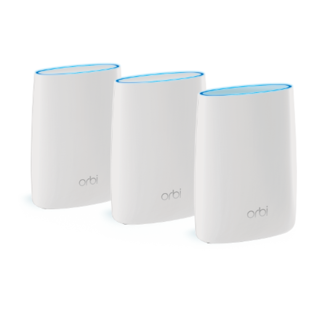 The Netgear RBK53 Orbi AC3000 Tri-band WiFi System is designed to deliver exceptional WiFi coverage and performance for large homes or offices. This powerful system includes an Orbi Router (RBR50) and two Orbi Satellites (RBS50), ensuring seamless connectivity throughout your home with up to 7,500 sq. ft. of coverage. The Tri-band technology provides speeds up to 3Gbps, supporting multiple devices simultaneously without compromising speed. Perfect for streaming, gaming, and heavy internet use, it ensures a reliable connection for every room. The easy-to-set-up Orbi app allows you to manage your WiFi network from anywhere. Advanced security features protect your data and privacy with automatic updates and built-in encryption. Whether you’re working, streaming, or gaming, the Orbi AC3000 WiFi system ensures you stay connected with fast, stable internet, reducing buffering and latency. Get the ultimate WiFi experience with Netgear’s Orbi Tri-band system.