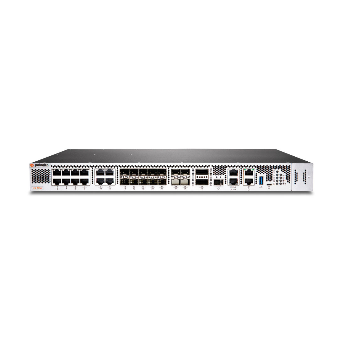 The Palo Alto Networks PA-3430 is a high-performance next-generation firewall (NGFW) designed for fast, secure internet gateway deployments. As part of the PA-3400 Series, it combines cutting-edge machine learning (ML) technology to provide robust protection against a wide range of threats, including advanced malware and zero-day attacks. This powerful firewall is built to handle high-speed internet traffic without sacrificing security.