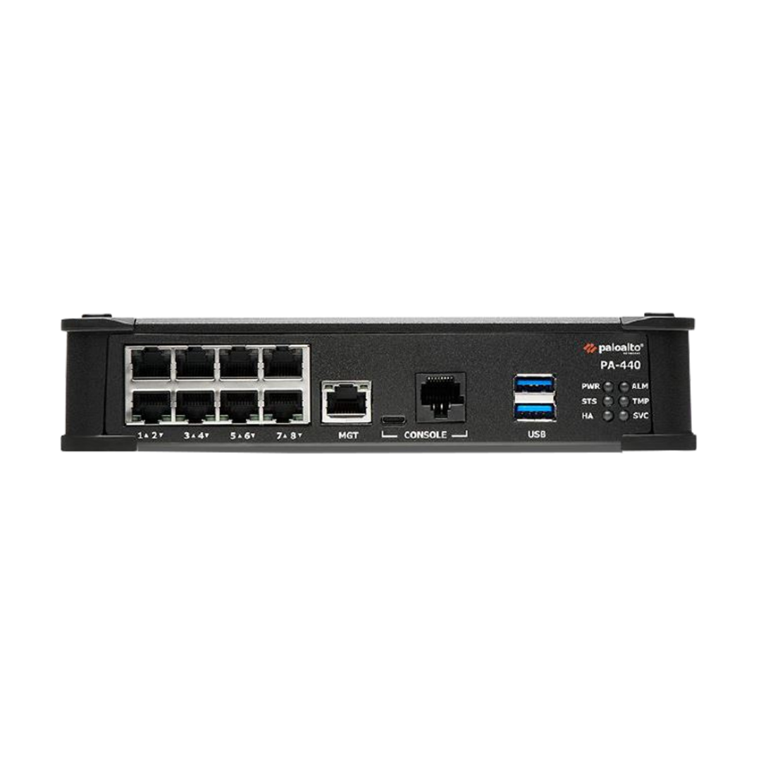 The Palo Alto Networks PA-440 Next-Generation Firewall is designed for distributed enterprise branch offices, retail locations, and midsize businesses seeking robust network security. With machine learning (ML)-powered threat prevention, the PA-440 offers protection against a wide range of modern cyber threats, including malware, ransomware, and advanced persistent threats.