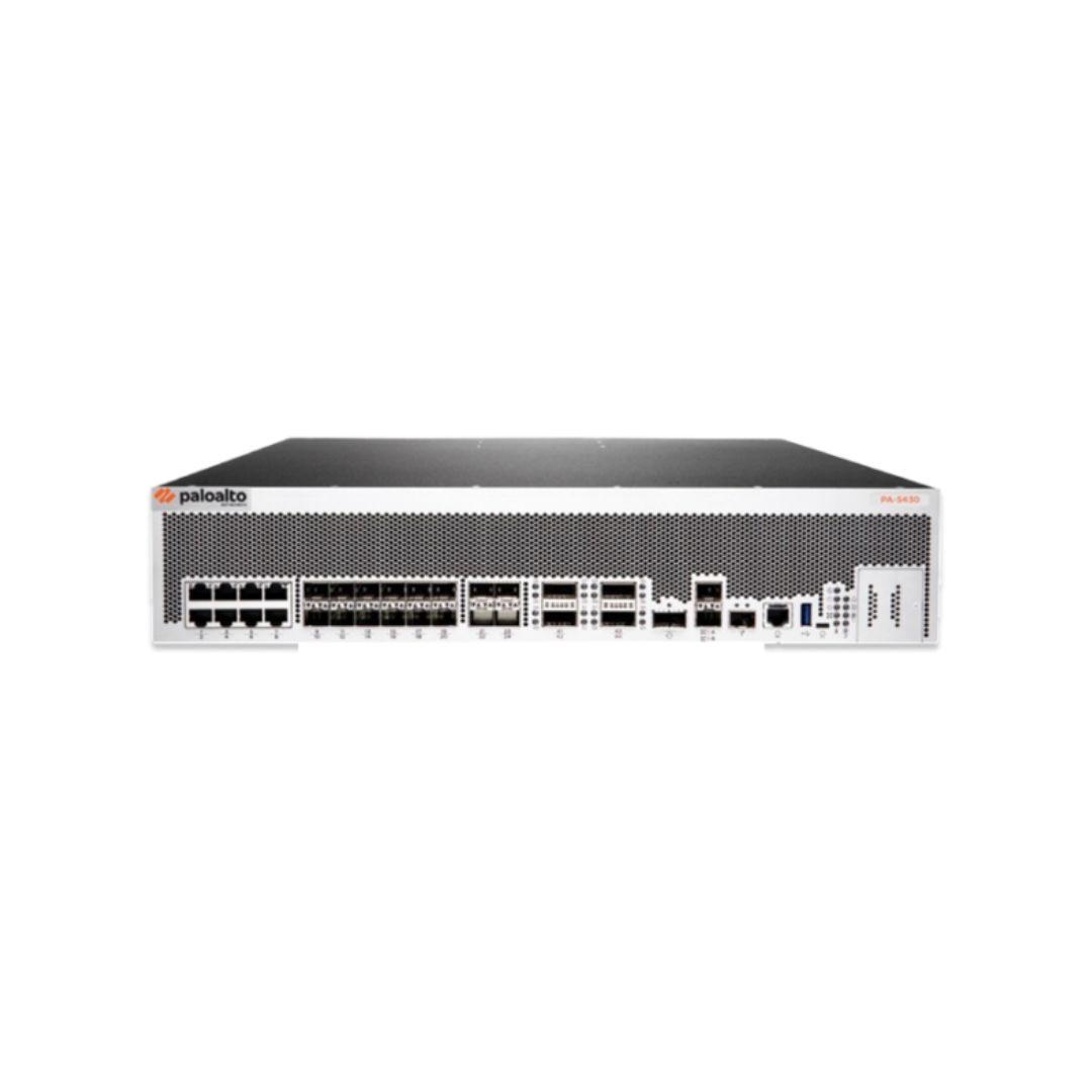 The Palo Alto Networks PA-5430 is a powerful and highly scalable next-generation firewall (NGFW) designed for modern high-speed data center, internet gateway, and service provider deployments. As part of the PA-5400 Series, it leverages machine learning (ML) technology to provide advanced threat prevention and secure traffic at unprecedented speeds.