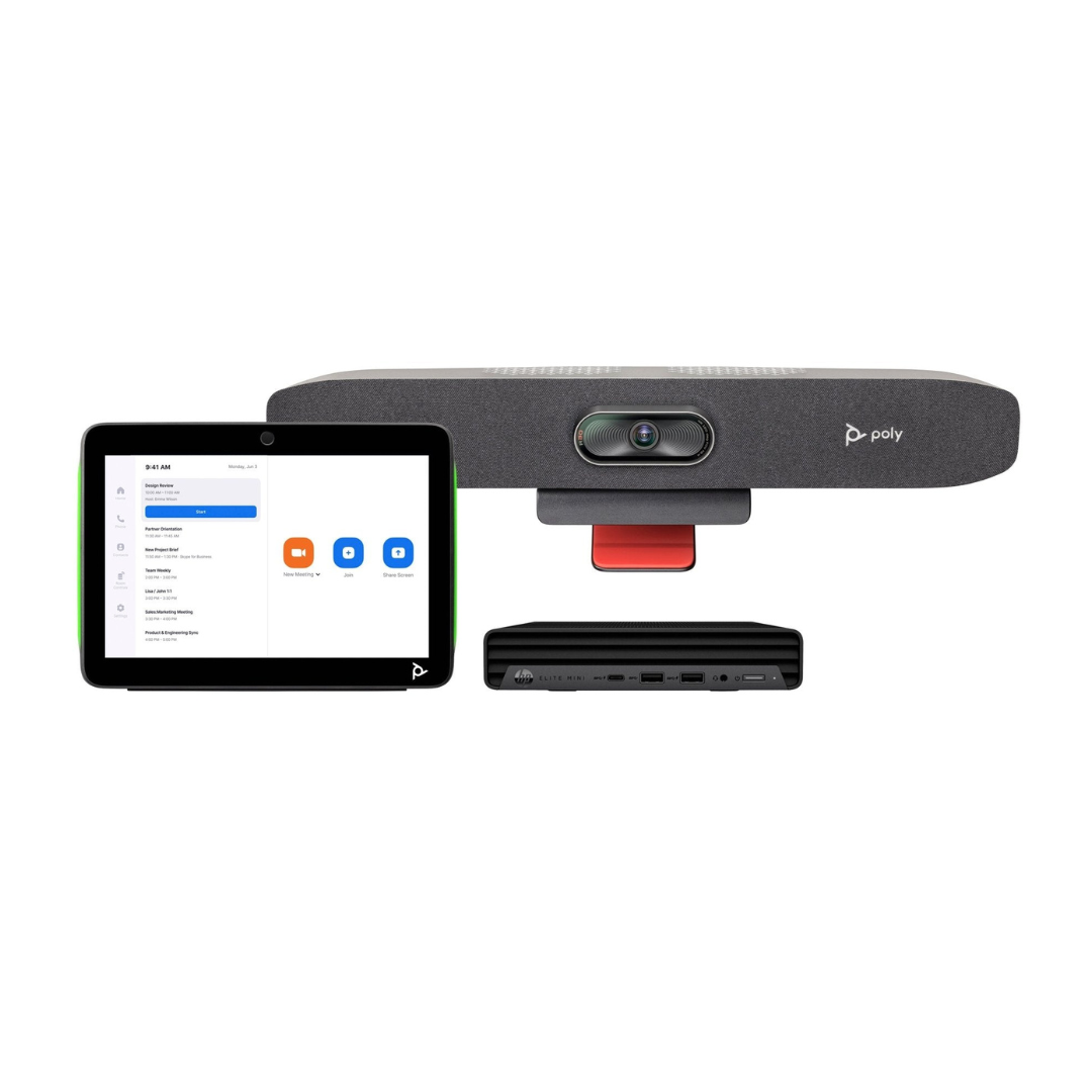 Audio is crystal clear thanks to Poly’s beamforming mic array with NoiseBlockAI and Acoustic Fence technologies, isolating voices within the room and canceling background distractions The included Poly TC10 touch controller offers intuitive control over the Zoom experience — schedule, join, mute—even from anywhere in the room thanks to PoE connectivity Powering the solution is the HP Mini Conferencing PC (Intel i7, 256 GB SSD, Windows IoT) with Zoom Rooms pre-installed for immediate use Setup is plug-and-play simple: connect the R30 USB bar, TC10 via Ethernet, and your display. Ideal for small huddle spaces, this bundle delivers premium video/audio, secure performance, and the reassurance of Poly+ service support |