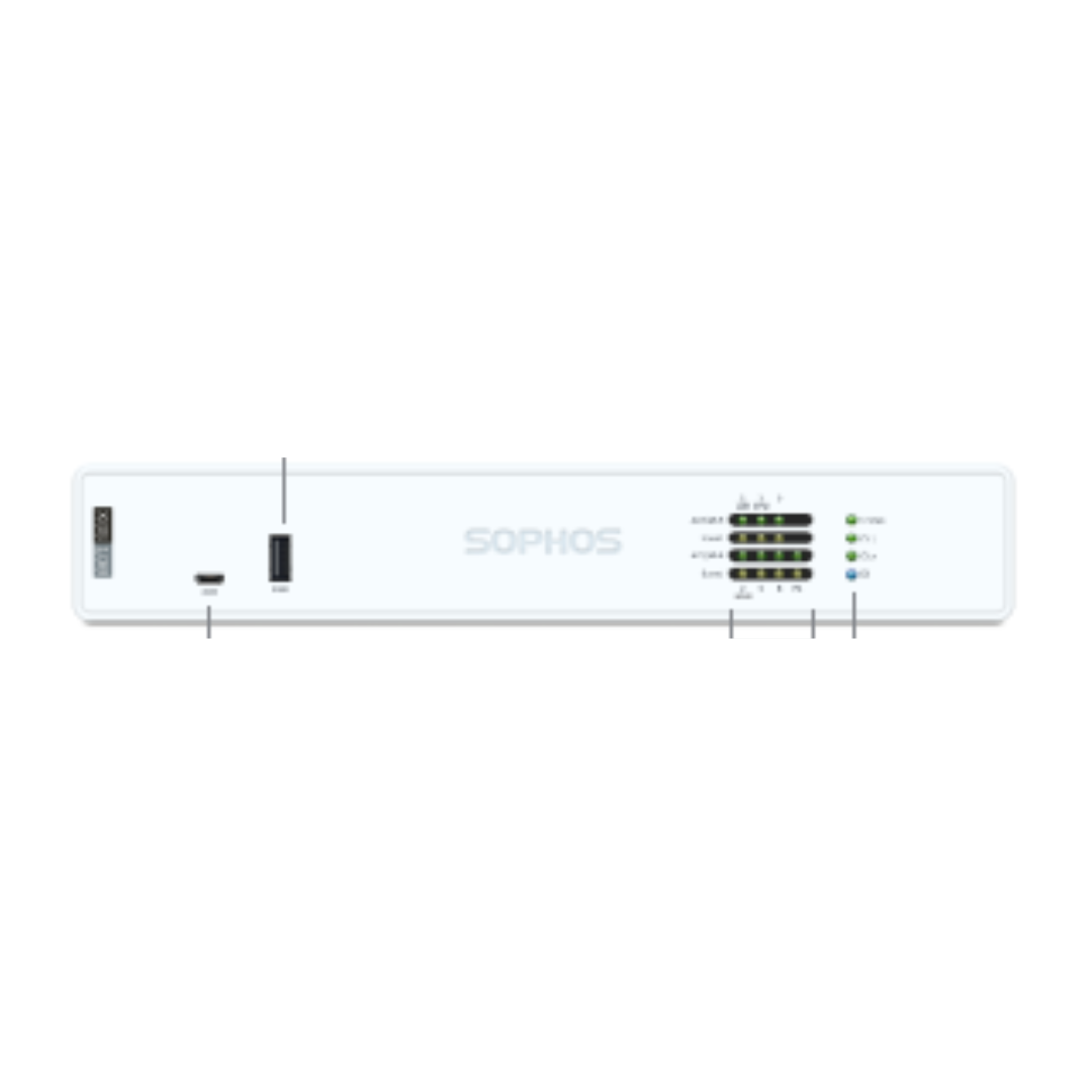 The Sophos XGS 108 is a high-performance 2nd Gen firewall tailored for SMBs and branch offices, providing advanced security and exceptional speeds. With a firewall throughput of 12,500 Mbps, TLS inspection at 800 Mbps, and IMIX speeds of 8,100 Mbps, it delivers reliable performance for demanding network environments. It features six 2.5 GE copper ports and one SFP fiber interface for flexible connectivity.