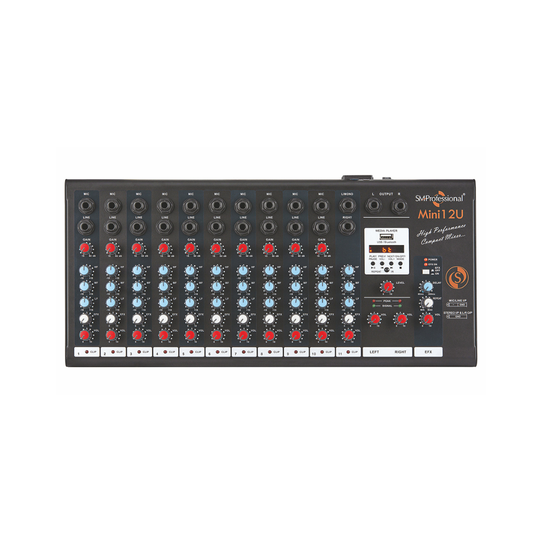 Equipped with onboard delay EFX, the Mini 12U allows you to enhance your audio with professional effects for live events or recording sessions. The USB MP3 media player with transport control lets you easily play and control your audio tracks, while Bluetooth connectivity allows for wireless streaming from any Bluetooth-enabled device.