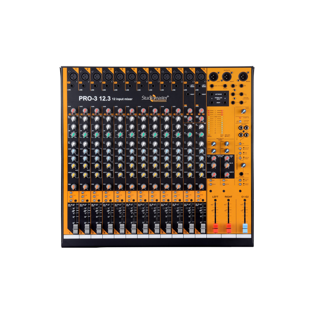Perfect for musicians, audio engineers, and sound professionals, the Studiomaster Pro 12.3DX Mixer offers unmatched performance, reliability, and versatility for all your audio mixing needs.
