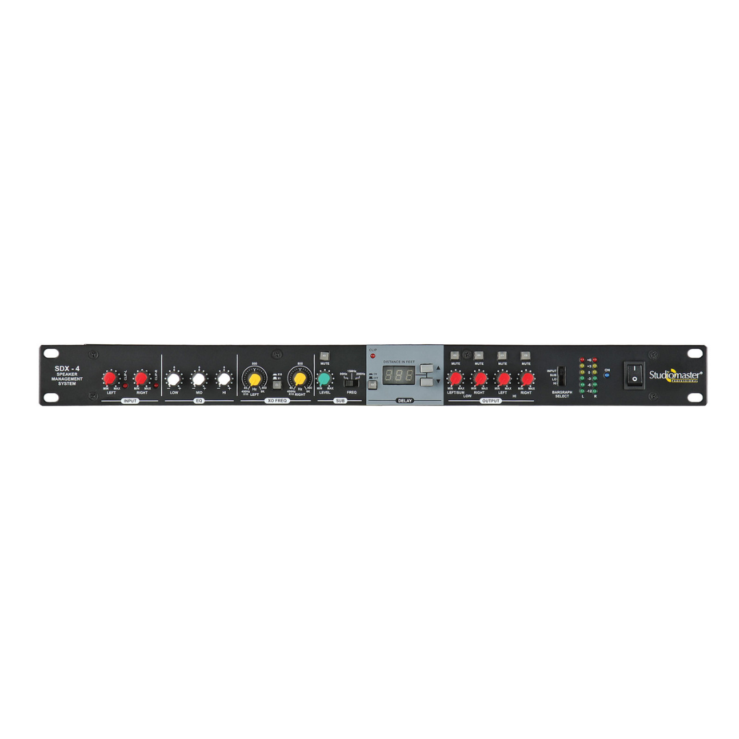 The Studiomaster SDX-4 Active Crossover Speaker Management System is an essential tool for precise audio control in a variety of sound system setups. Designed for managing multiple loudspeakers or speaker arrays, it offers exceptional flexibility for both professional audio engineers and DJs. The 2+1 way crossover design allows for smooth and accurate frequency distribution, ensuring optimal sound performance.