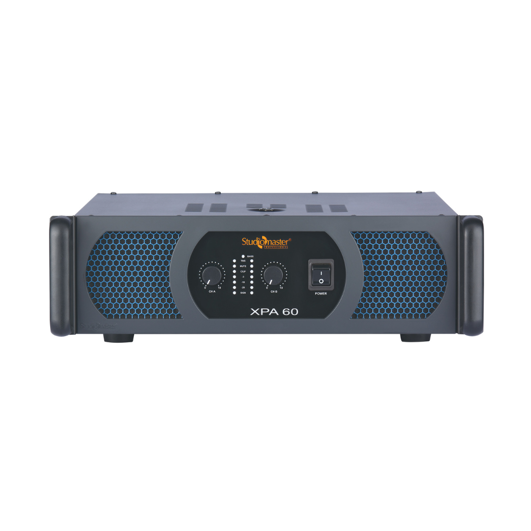 The Studiomaster XPA 60 combines rugged construction with a sleek, modern design, offering durability and ease of integration into existing setups. Ideal for both indoor and outdoor events, it is perfect for venues that require powerful, reliable audio amplification.